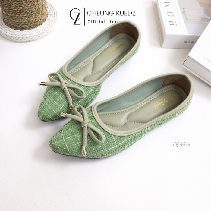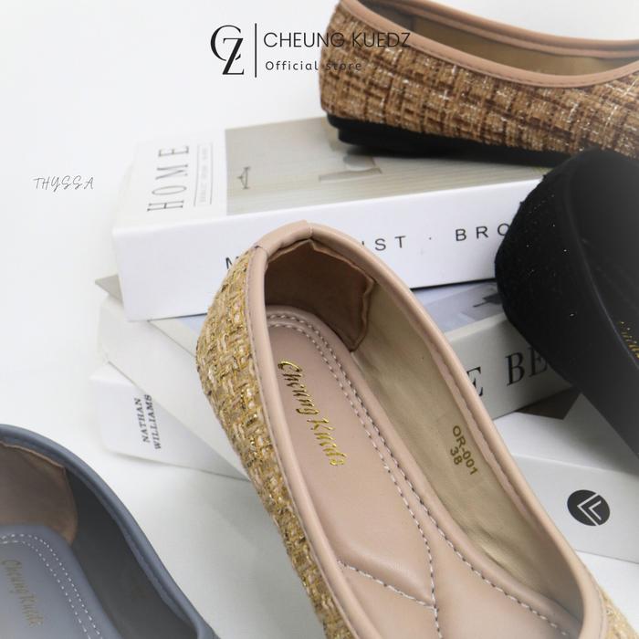 CHEUNG KUEDZ THYSSA SEPATU FLAT WANITA SENDAL BALET FLATSHOES SOL KARET - HITAM, 37