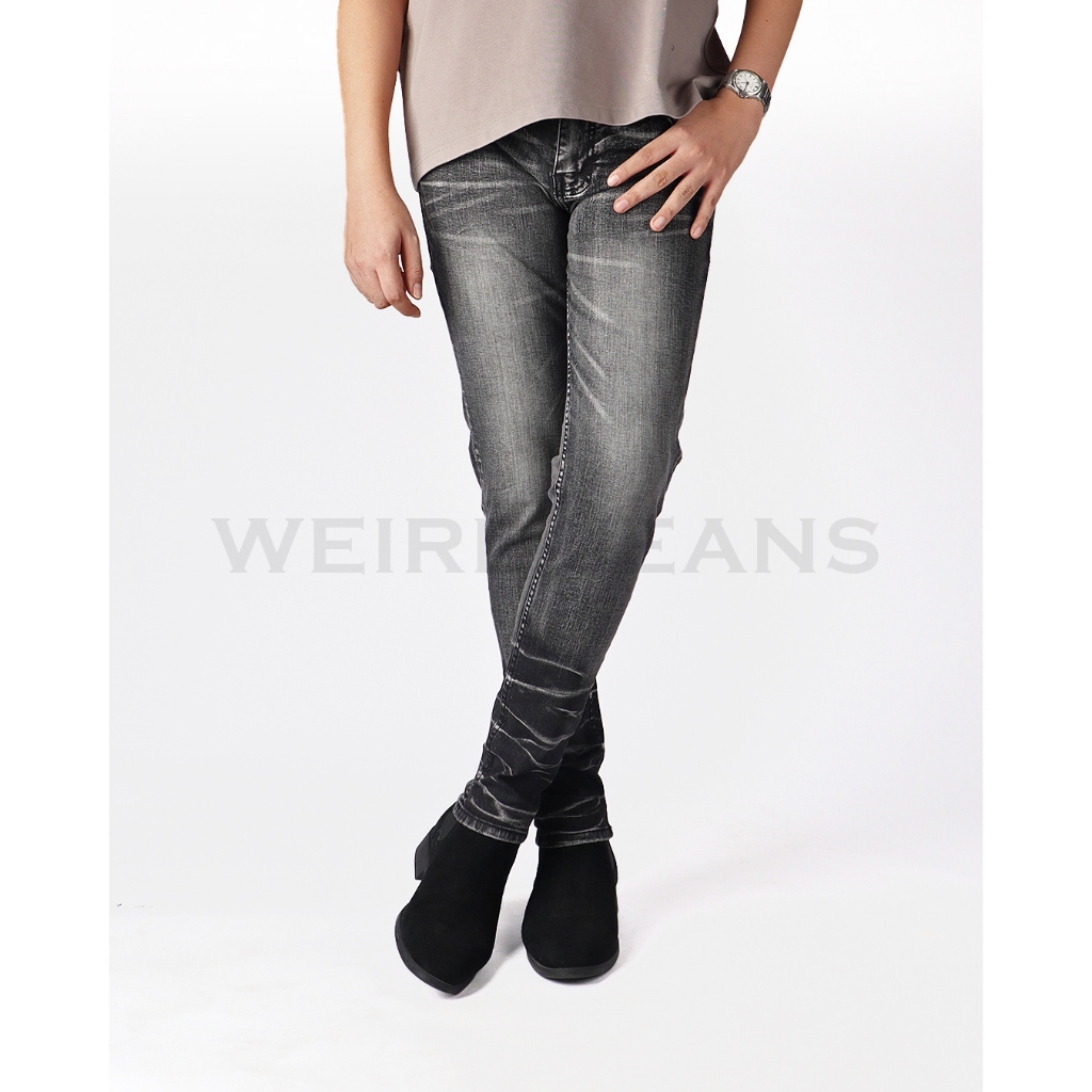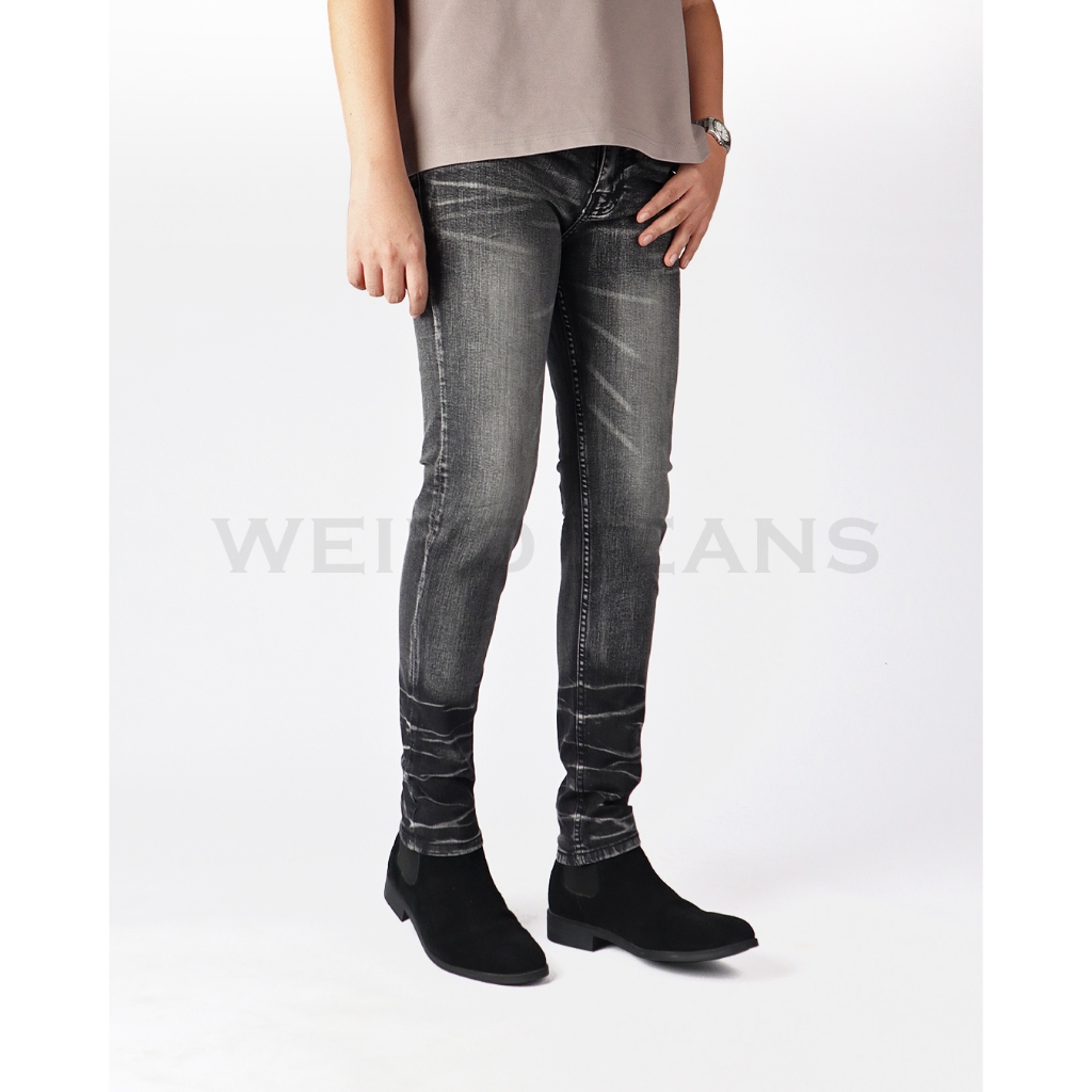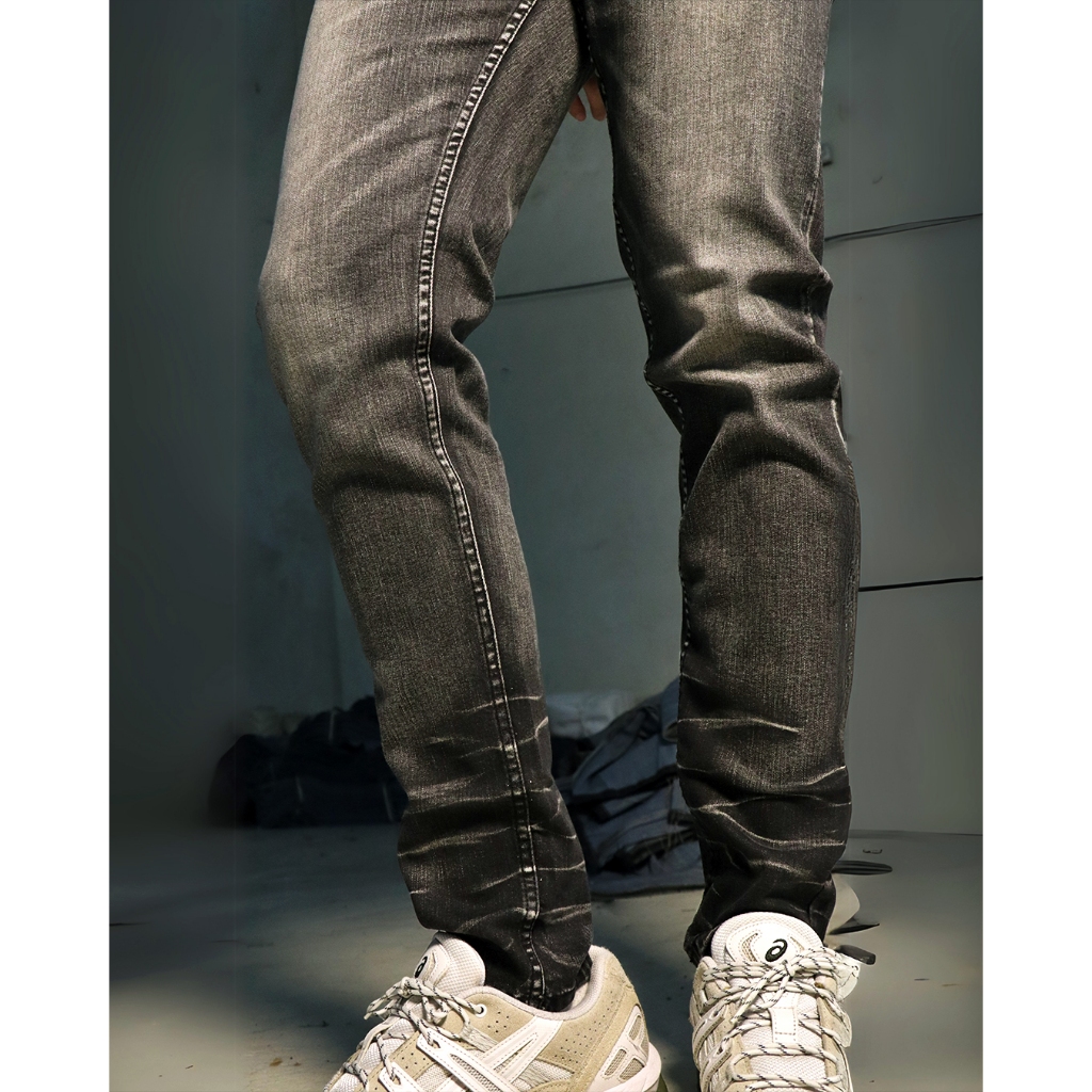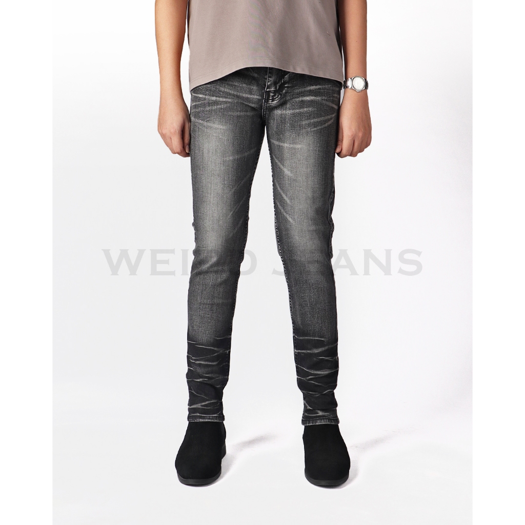 Weird Jeans - Alexy Grey - Celana Jeans Panjang Denim Pria Slim Fit Strech Warna Grey Fading Whisker Polos Tanpa Ripped
