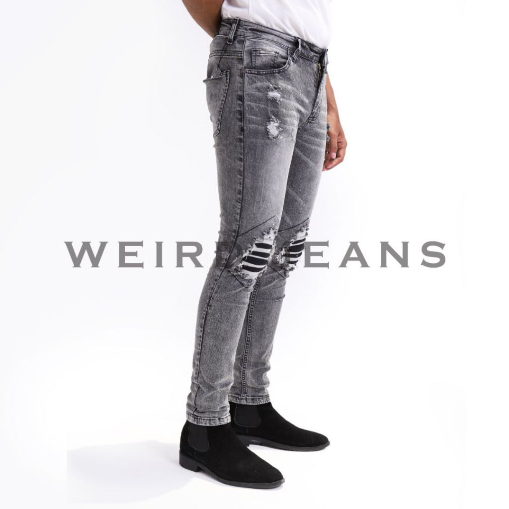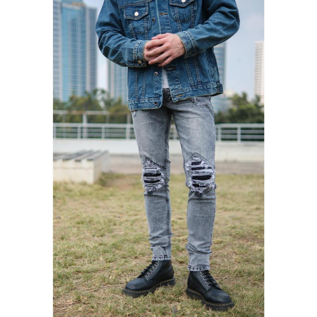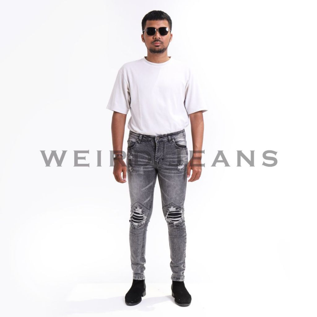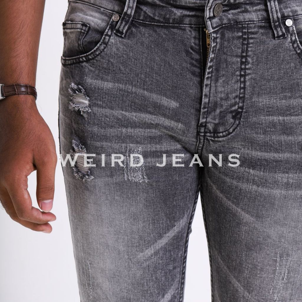 Weird Jeans - Sky Grey - Celana Jeans Panjang Pria Slim Fit Strech Ripped Warna Abu-Abu Nyaman