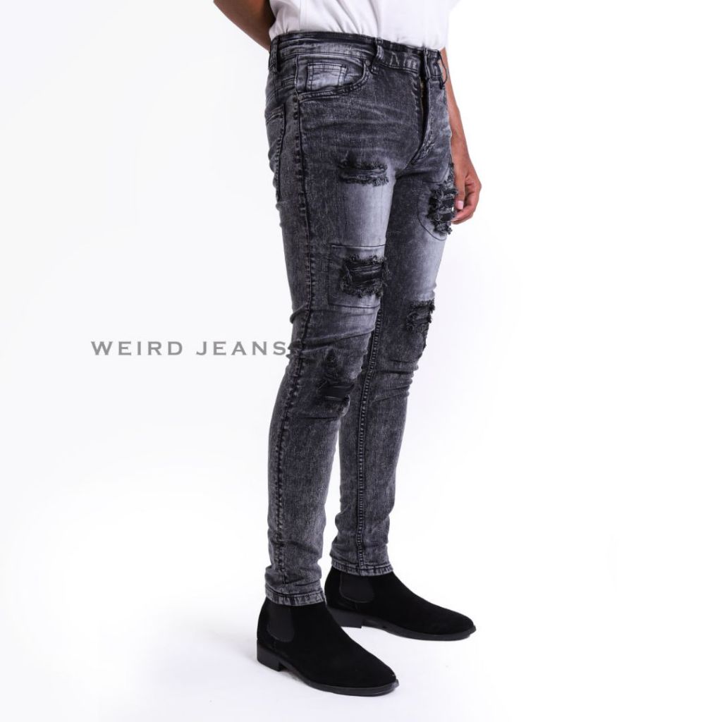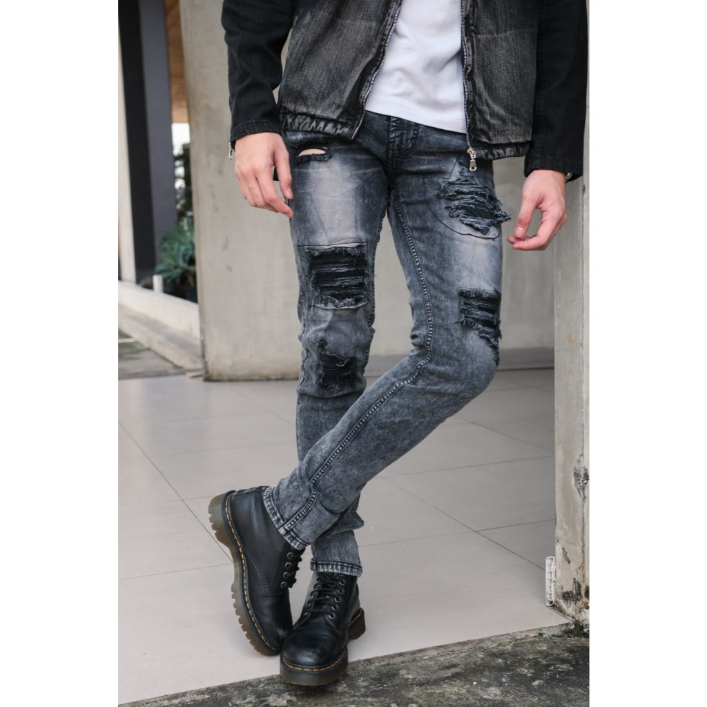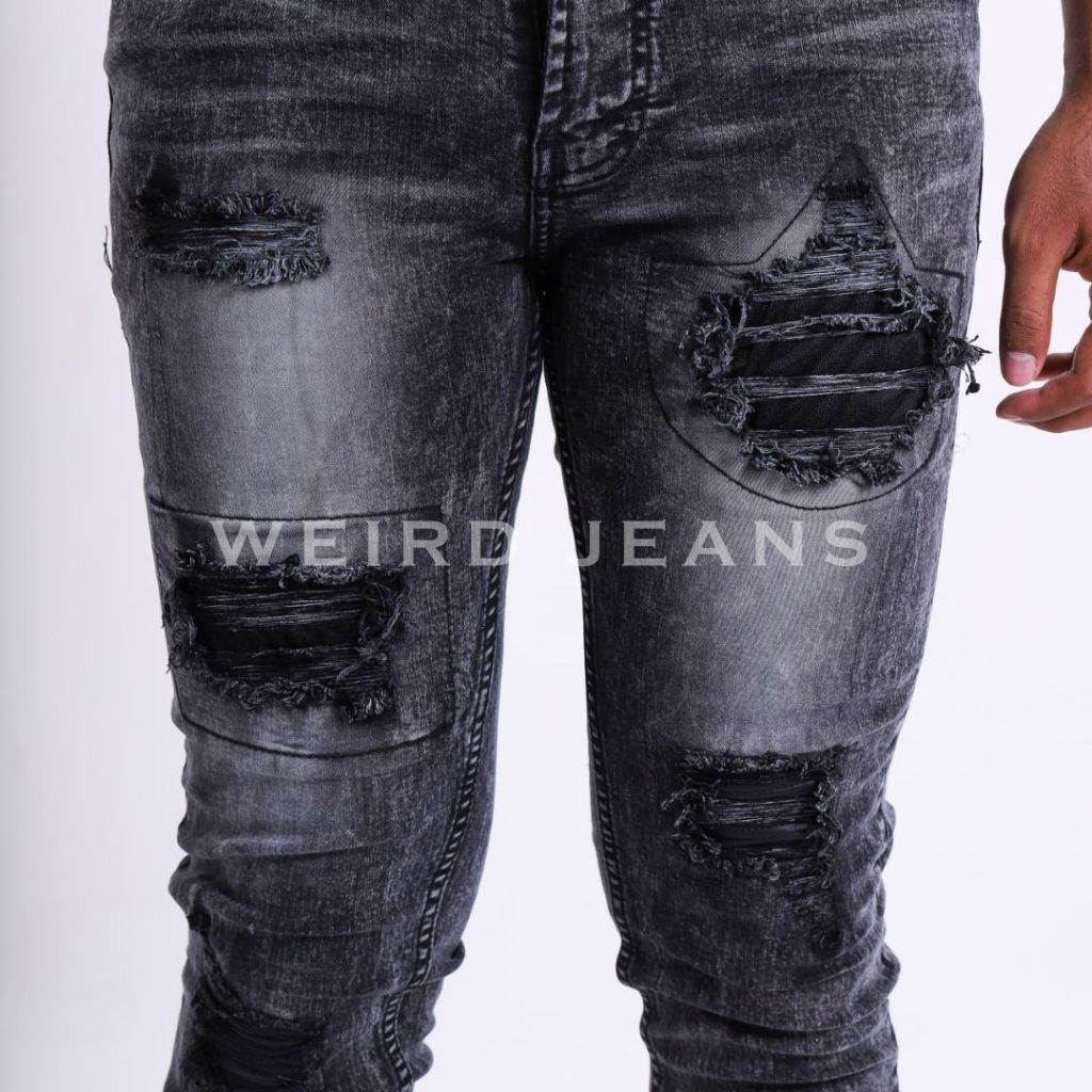 Weird Jeans - Chairos Black - Celana Panjang Jeans Pria Slim Fit Strech Sobek Ripped