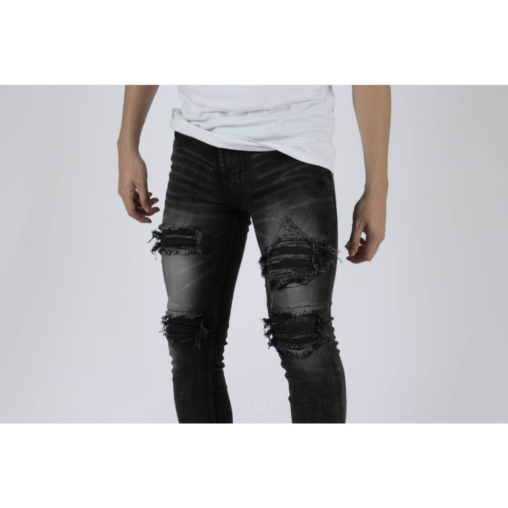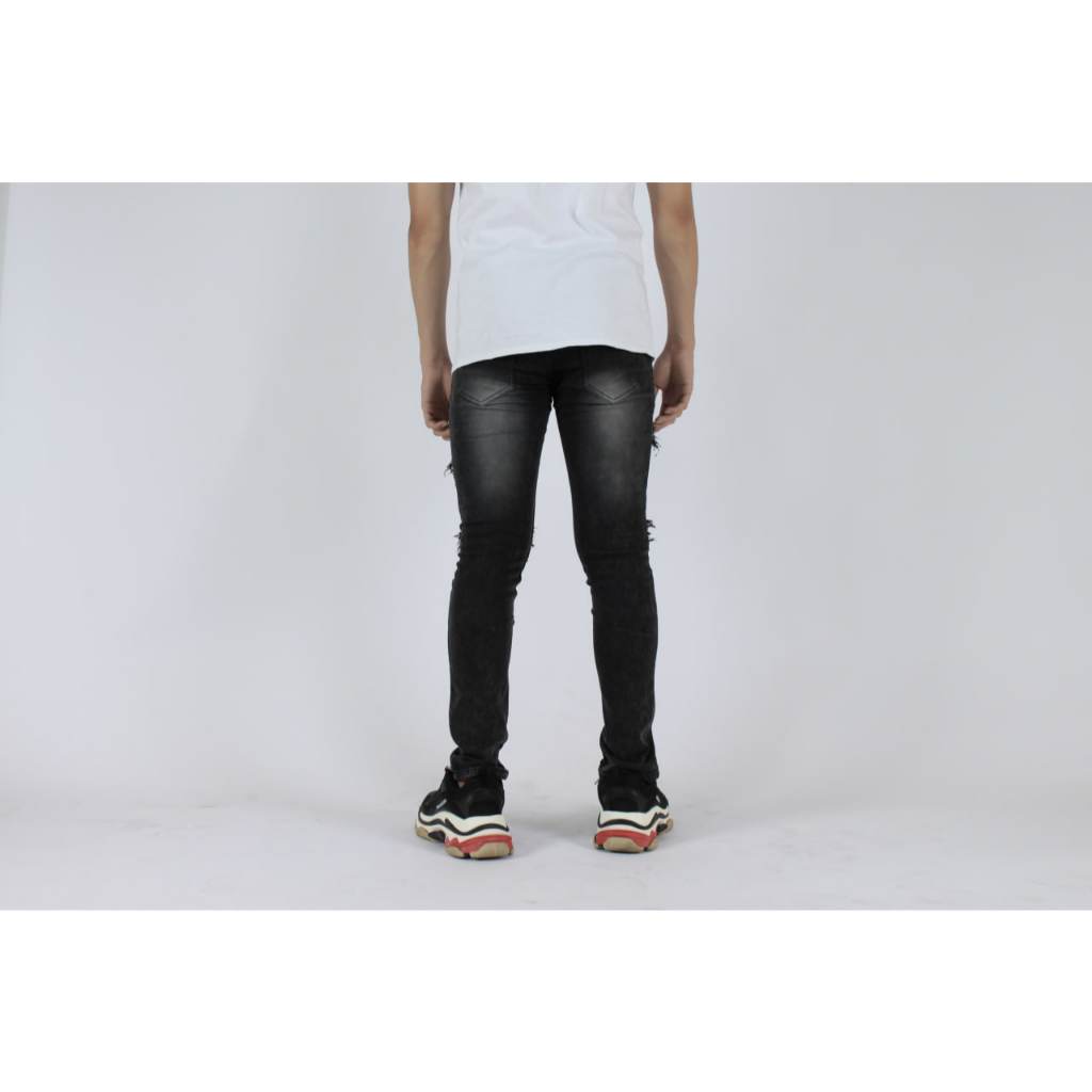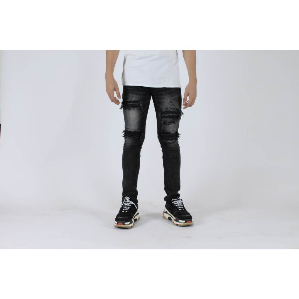 Weird Jeans - Austin Black - Celana Jeans Panjang Pria Slimfit Ripped Sobek Tambal