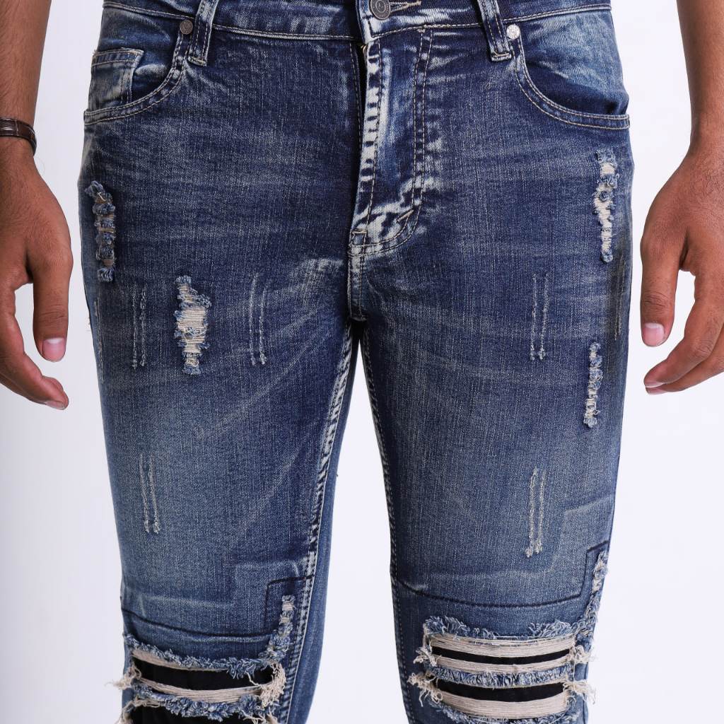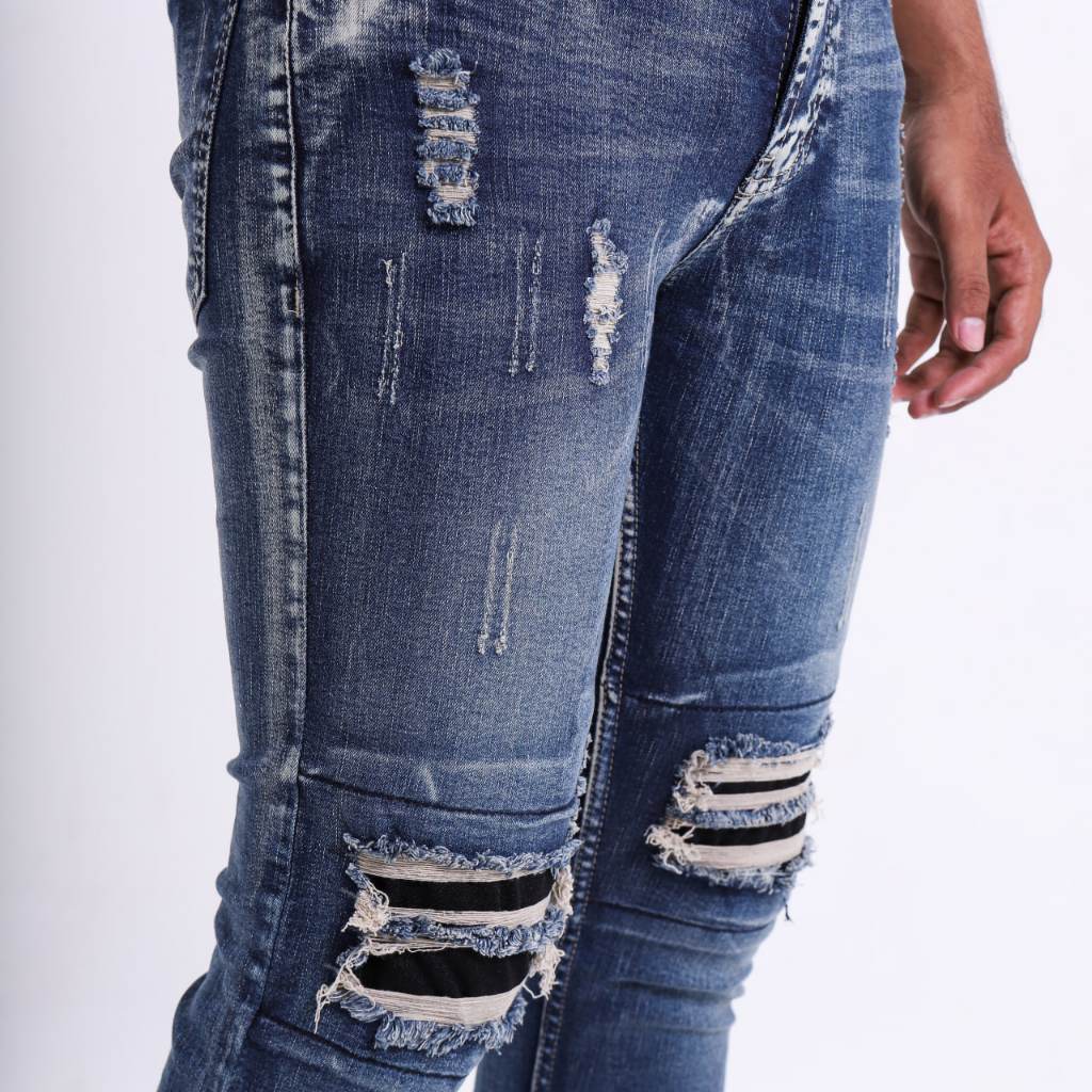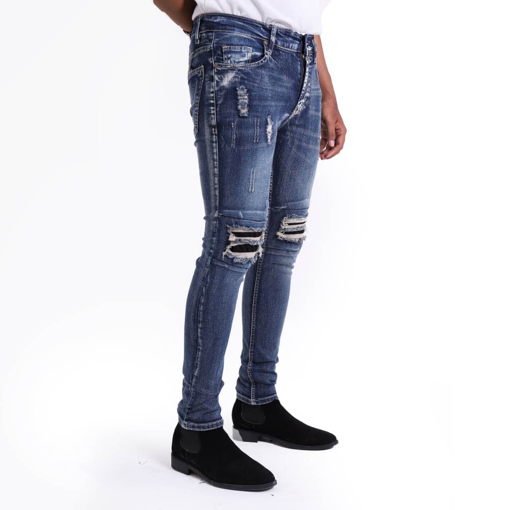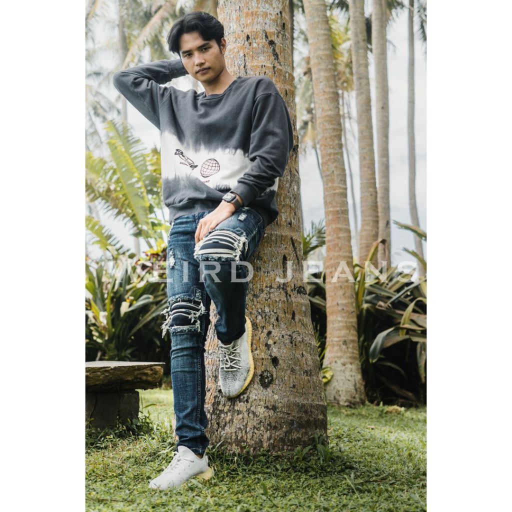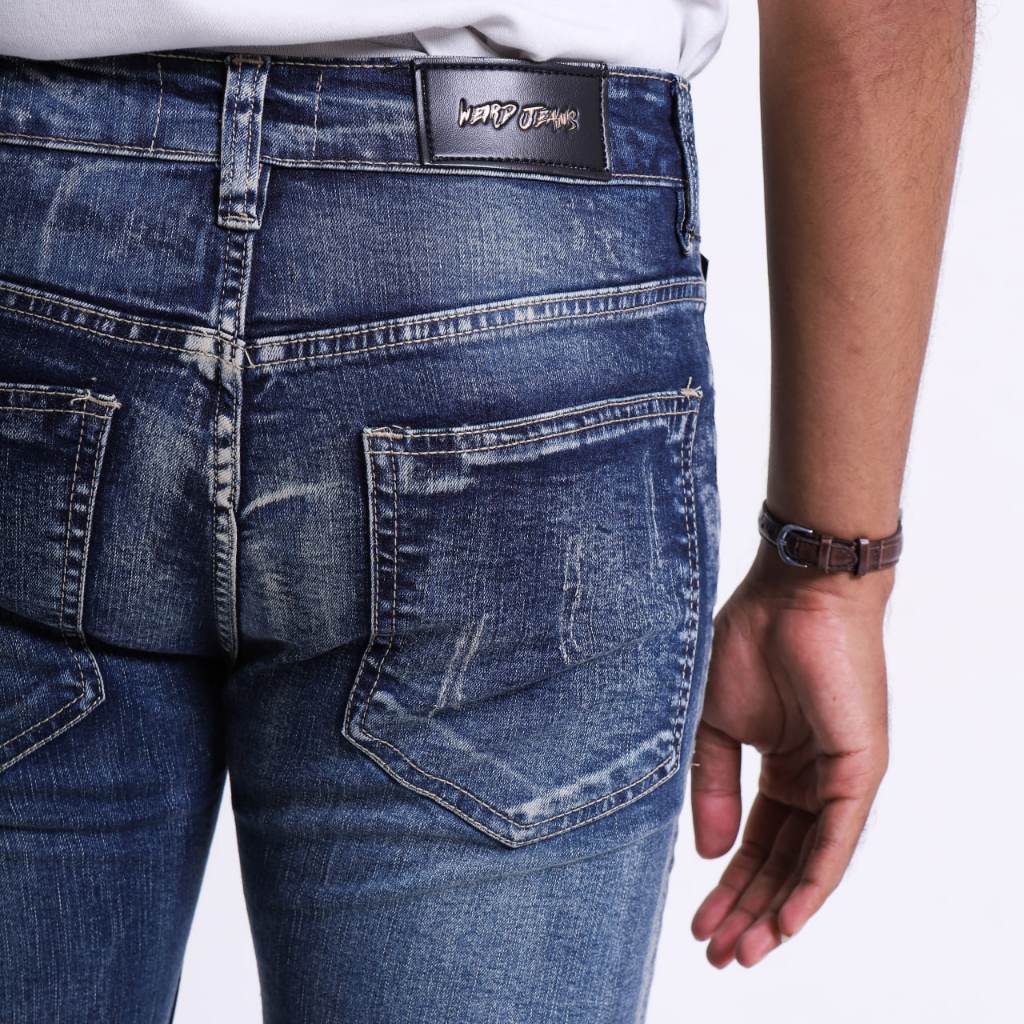 Weird Jeans - Blue Fallen - Celana Panjang Jeans Pria Sobek Tambal Strech Denim