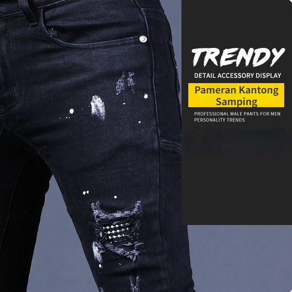 Jazcob - Celana Jeans Pria Slim Fit Dengan Robekan - 0500