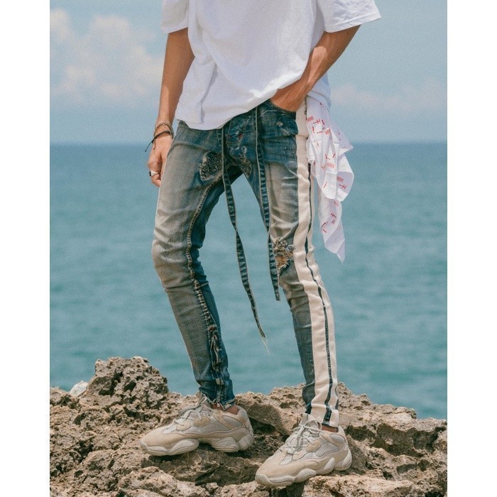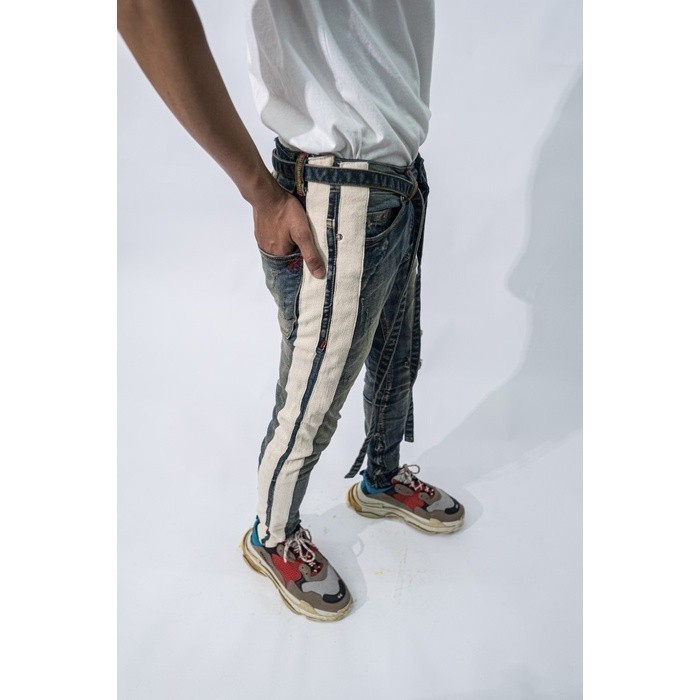 M1 Mid Distressed - Rusted Blue Dual Stripes - Celana Jeans