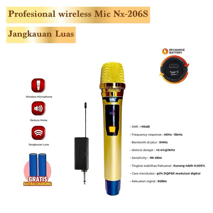 MIC WIRELESS 206 DUAL HANDHELD + RECEIVER | 2 MIC NIRKABEL CHARGEABLE PORTABEL UNTUK KARAOKE, EVENT, PIDATO, MC