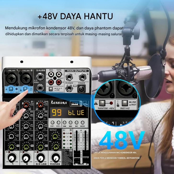 LUXSONA MIXER AUDIO 4 CHANNEL ORIGINAL | MIXING USB BLUETOOTH DIGITAL 99 DSP EFFECT STEREO INPUT MIKSER PROFESIONAL