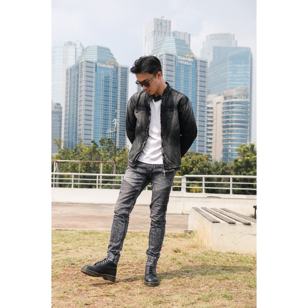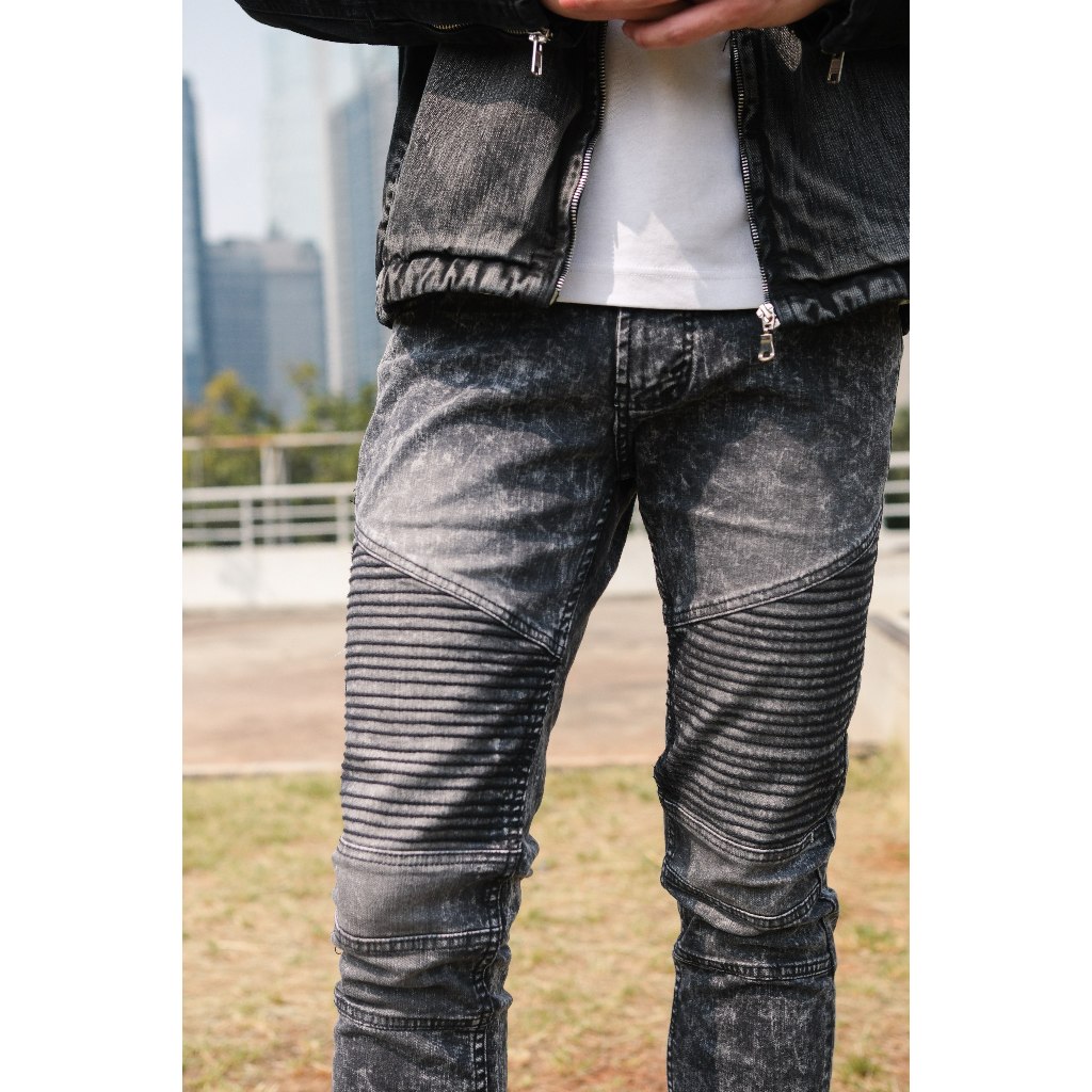 Weird Jeans - Biker Asphalt Grey - Celana Jeans Panjang Pria Slimfit Strech Polos