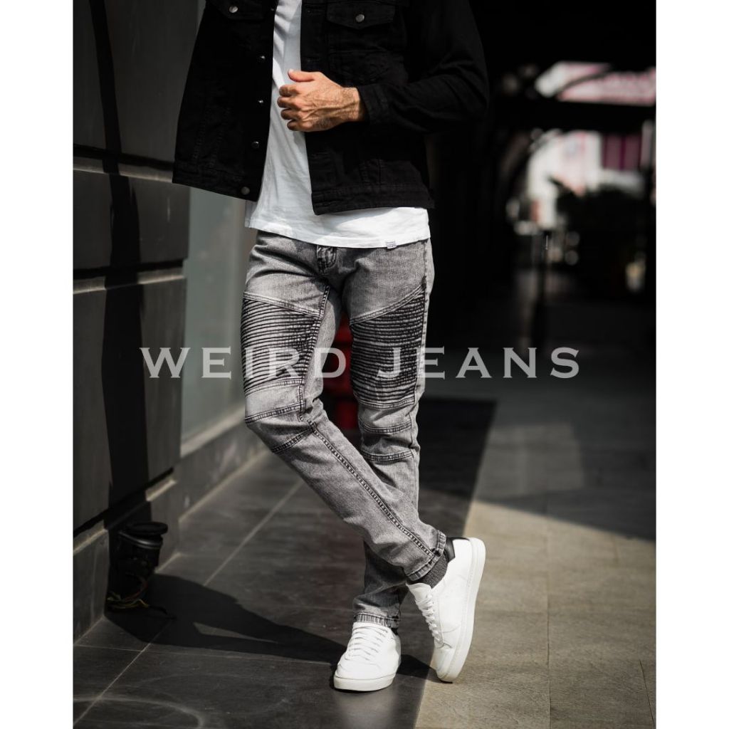 Weird Jeans - Biker Jeans Pure Grey - Celana Jeans Panjang Pria Stretch Polos Slimfit