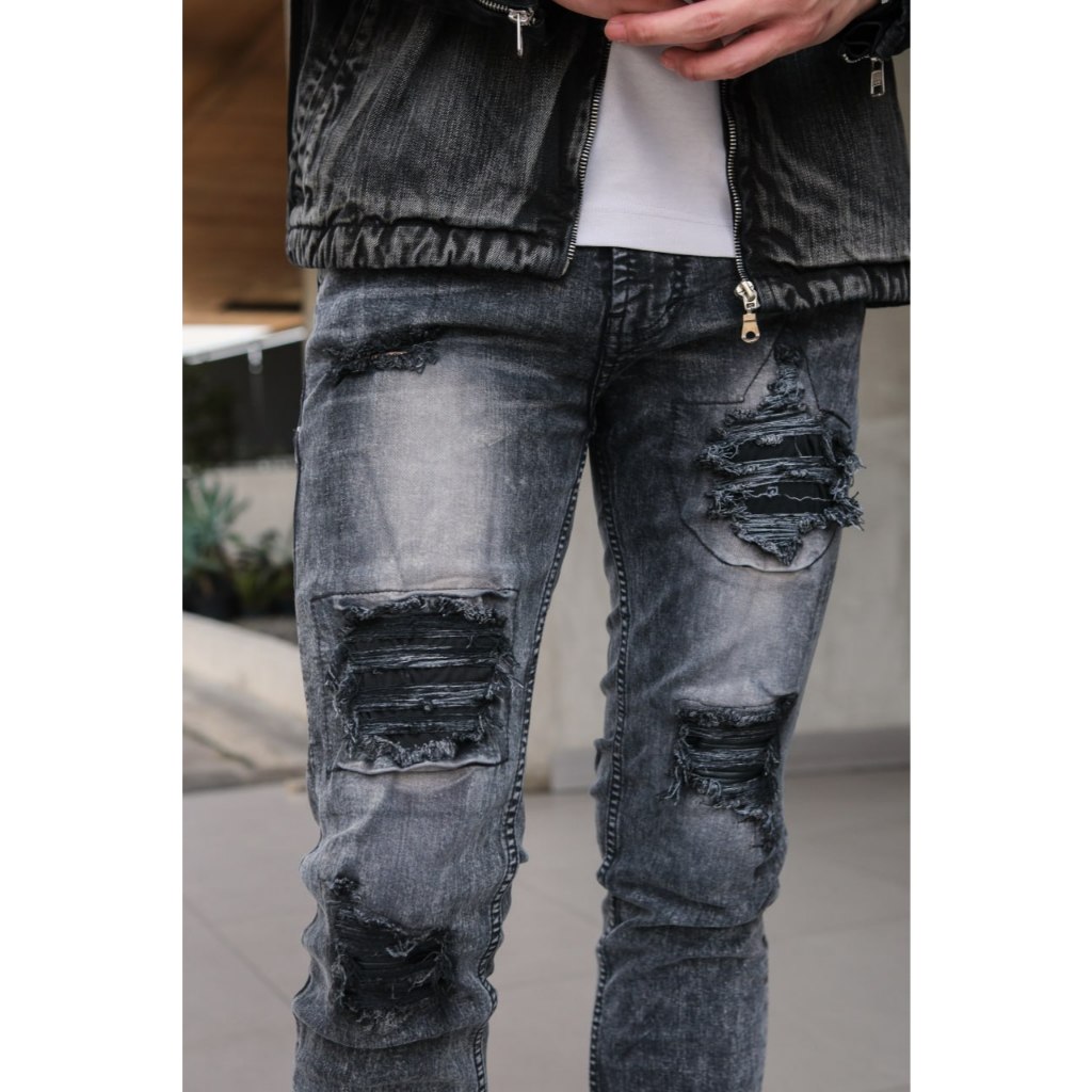 Weird Jeans - Chairos Black - Celana Panjang Jeans Pria Slim Fit Strech Sobek Ripped
