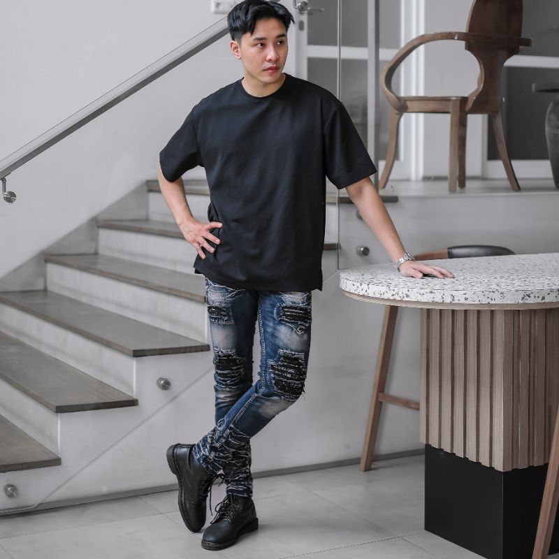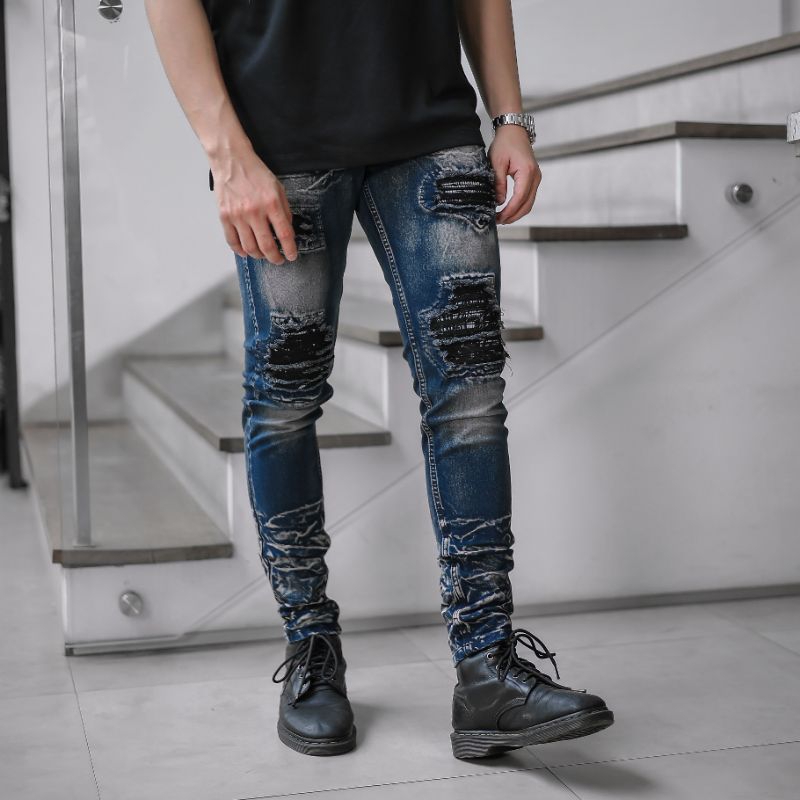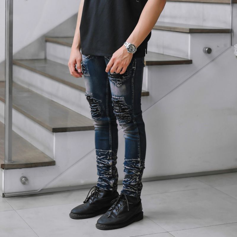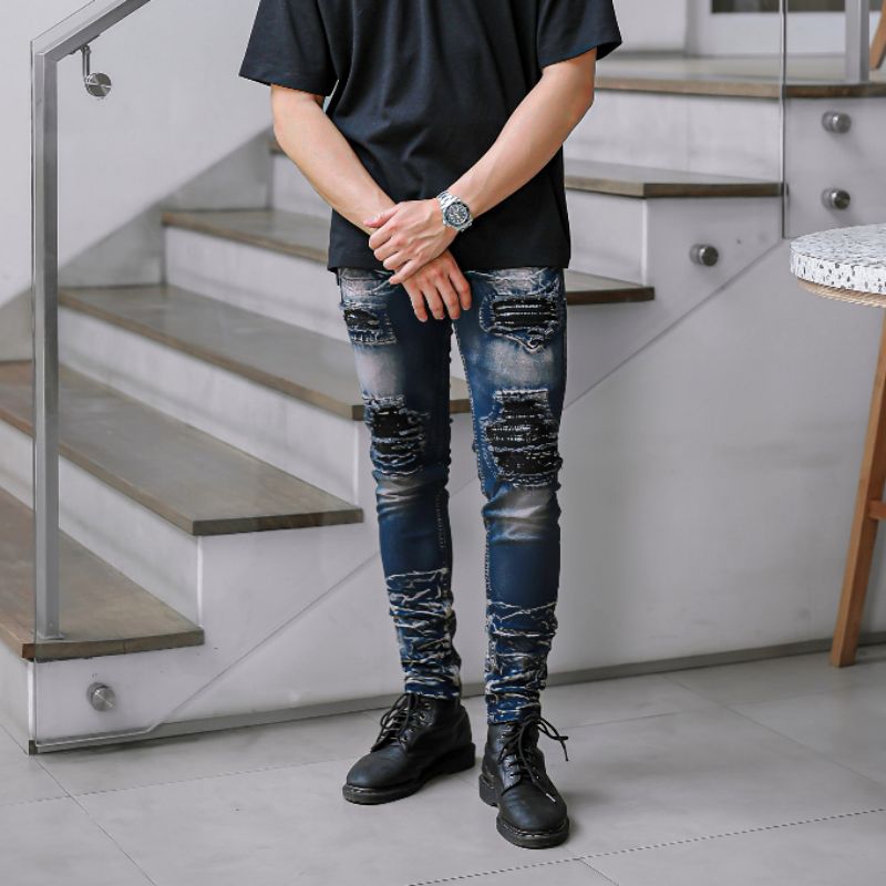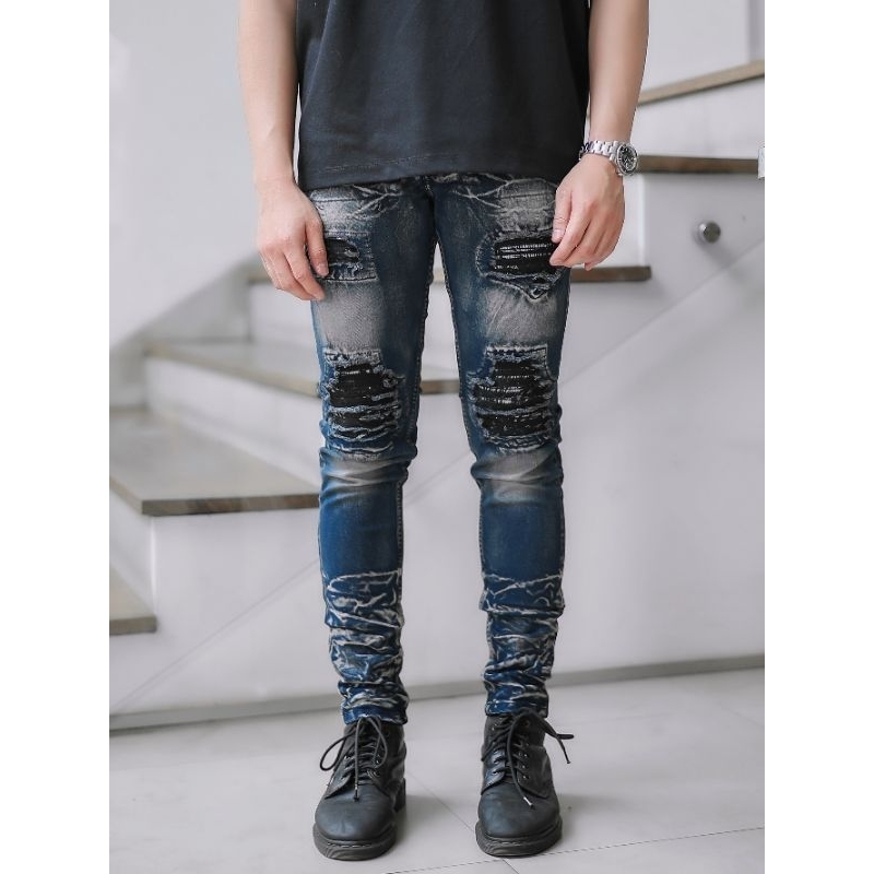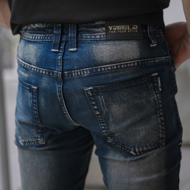 Virrel.Id - " Blue Indigo " -Celana Jeans Pria Skinny - Jeans Sobek - Ripped Denim