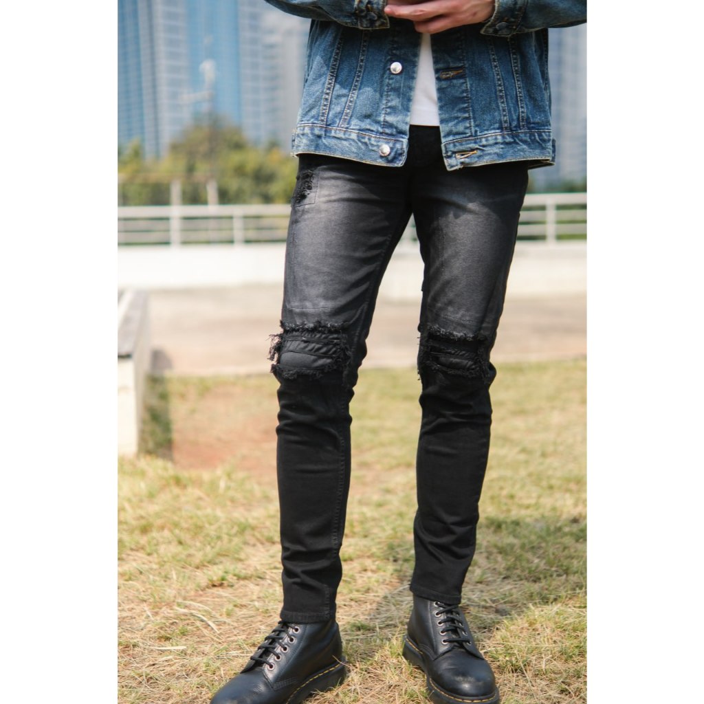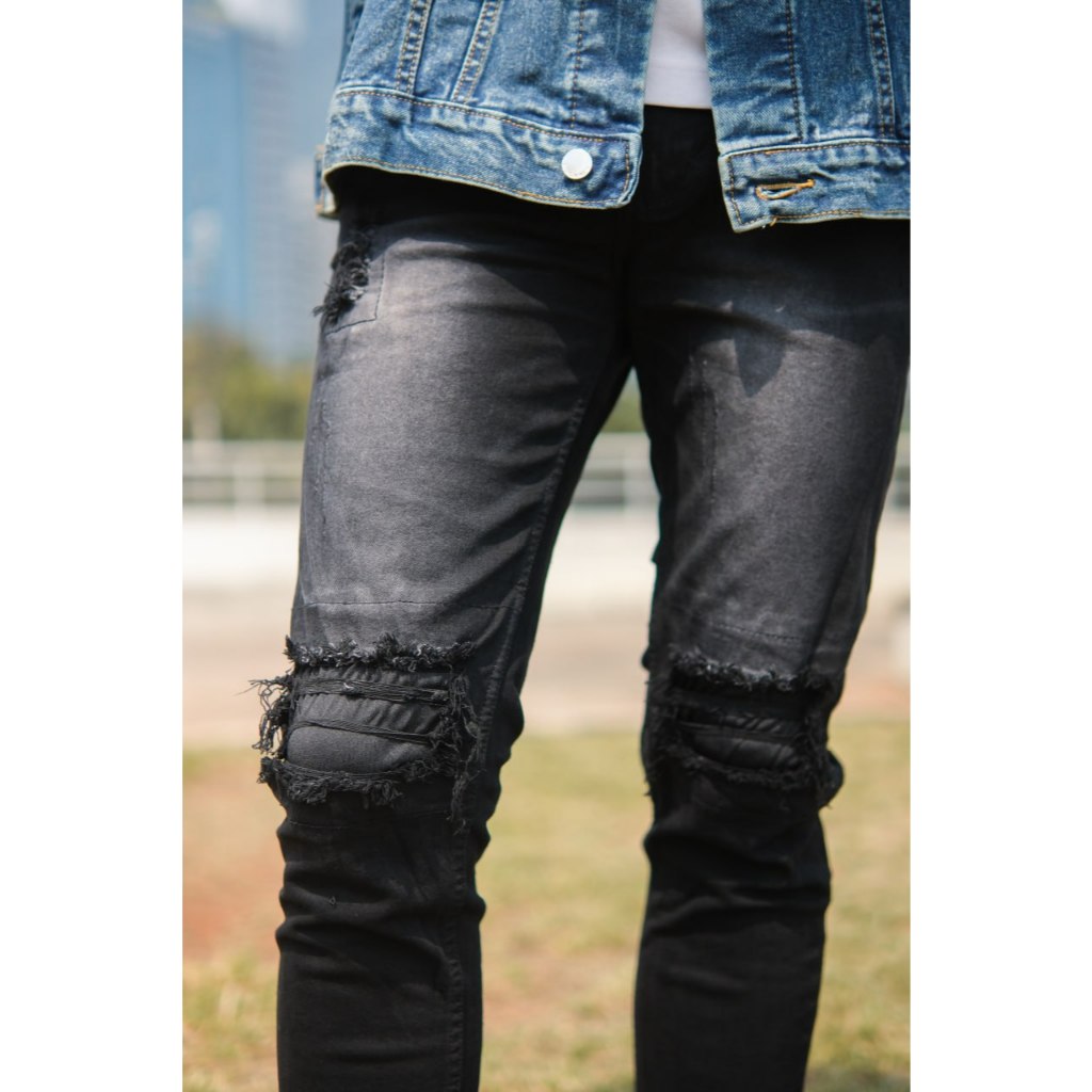 Weird Jeans - Black Series "Vintage Black" - Celana Jeans Panjang Pria Slimfit Ripped Jeans