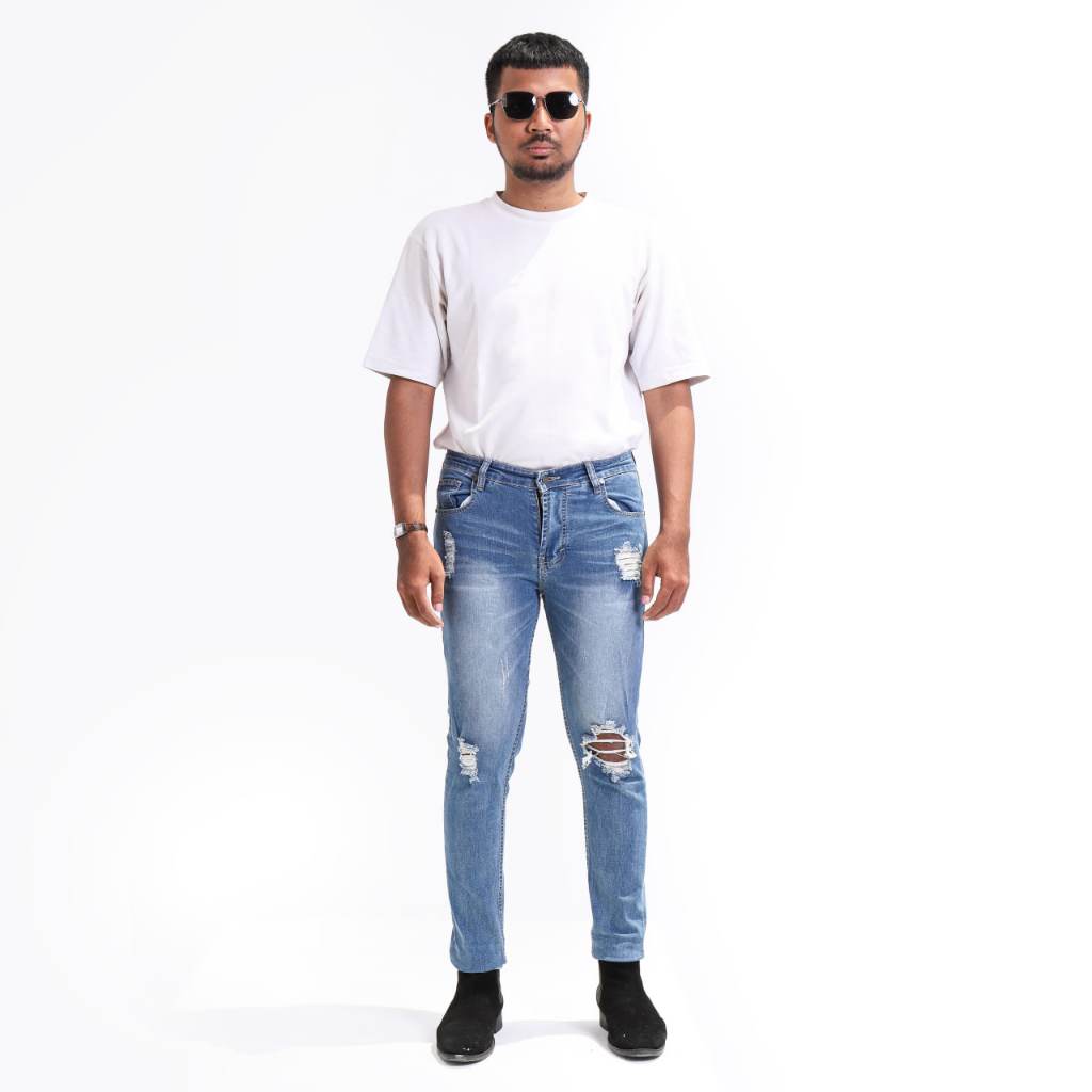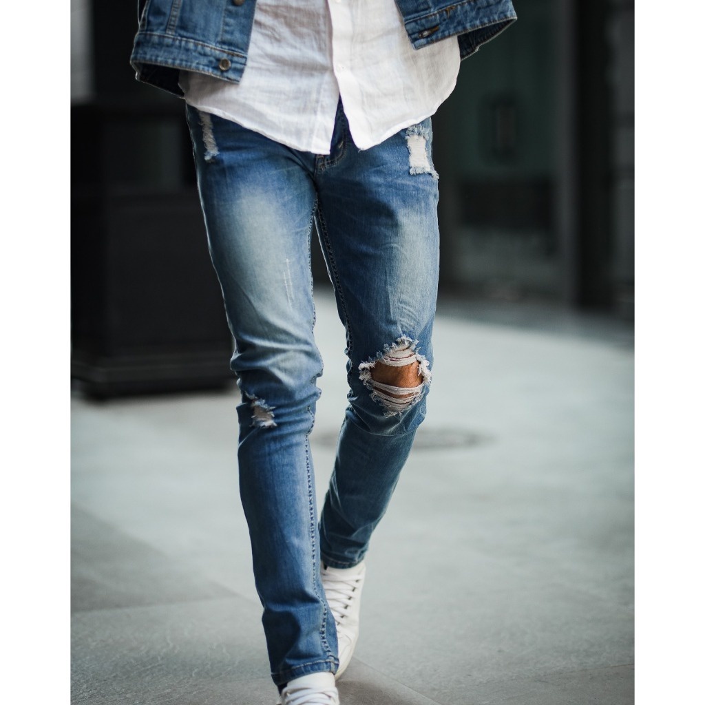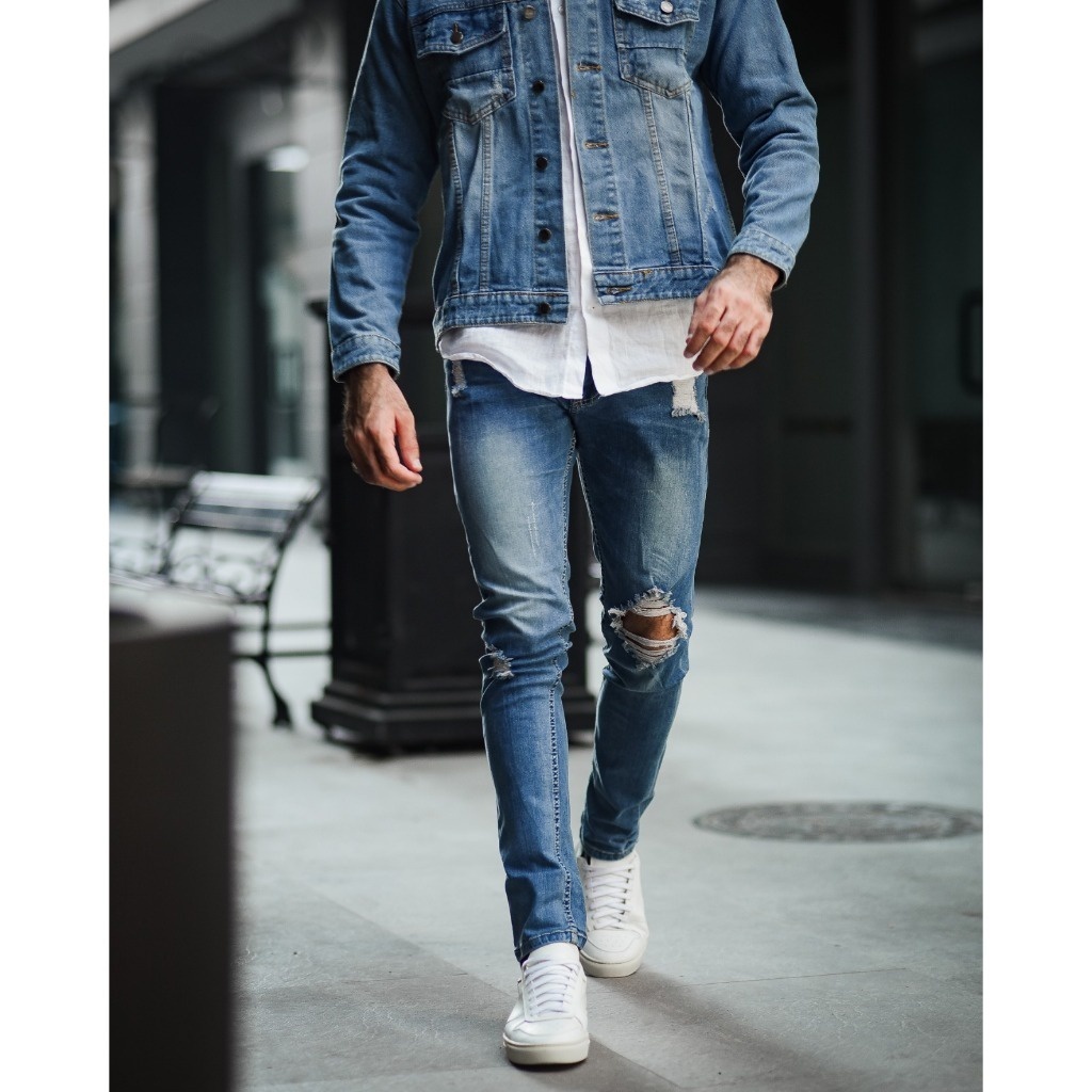Weird Jeans - Blue Modry A08 - Celana Jeans Panjang Pria Slimfit Ripped Jeans