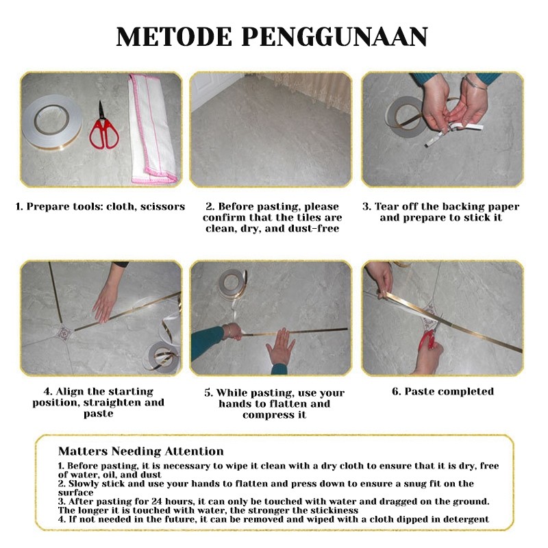 BEAUTY PLACE 50 Meter Gulungan Stiker Pembatas Keramik Lebar 0.5CM/1CM/2CM