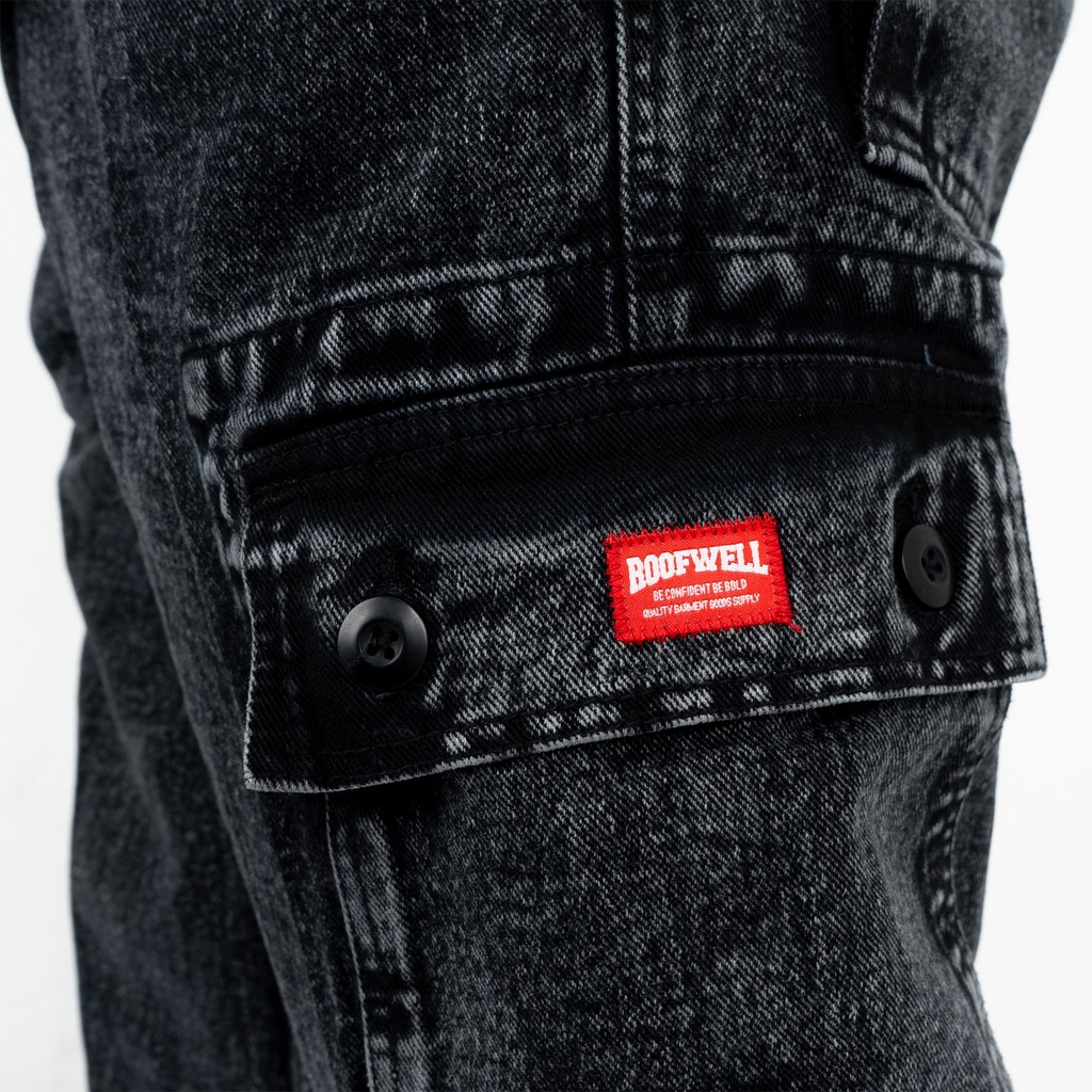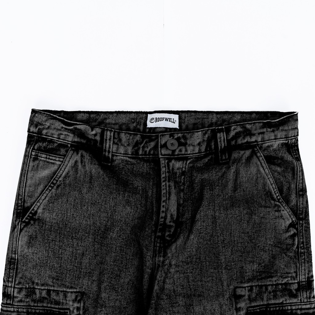 Roofwell - Threat - Cargo Jeans Black Sandwash | Celana Panjang | Celana Cargo Panjang | Cargo Pants | Cargo Pria | Cela