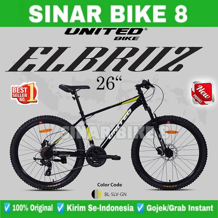 Sepeda Gunung Ukuran 20, 24 dan 26 Inch MTB UNITED ELBRUZ Rem Cakram 21 Speed
