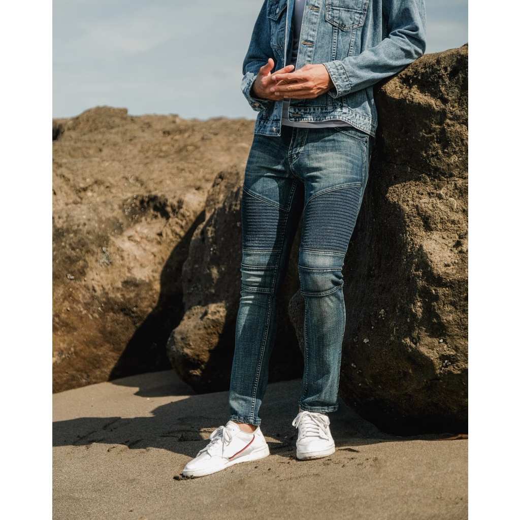 Weird Jeans - Biker Blue Indigo - Celana Biker Jeans Panjang Pria Skinny Slimfit Bahan Strech Denim