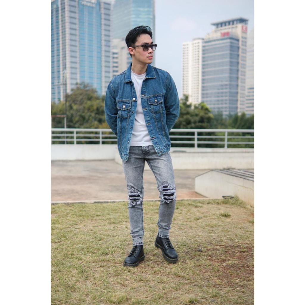 Weird Jeans - Sky Grey - Celana Jeans Panjang Pria Slim Fit Strech Ripped Warna Abu-Abu Nyaman