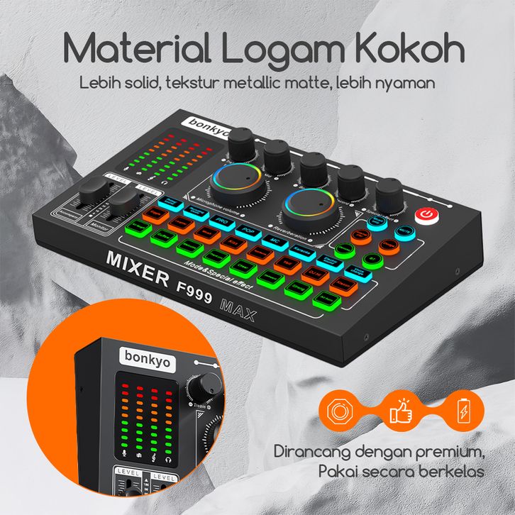 Bonkyo F999MAX Live SoundCard Bluetooth – Audio Mixer Streaming & Karaoke, Cocok untuk Content Creator