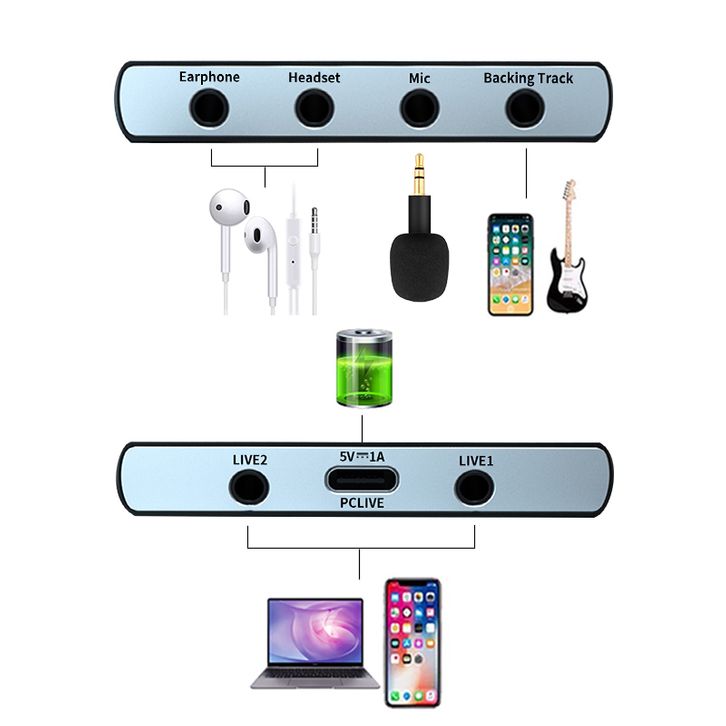 Siborie Paket Lengkap handhold soundcard voice changers BOX18 Complimentary mini mic Streaming Langsung Luar Ruangan