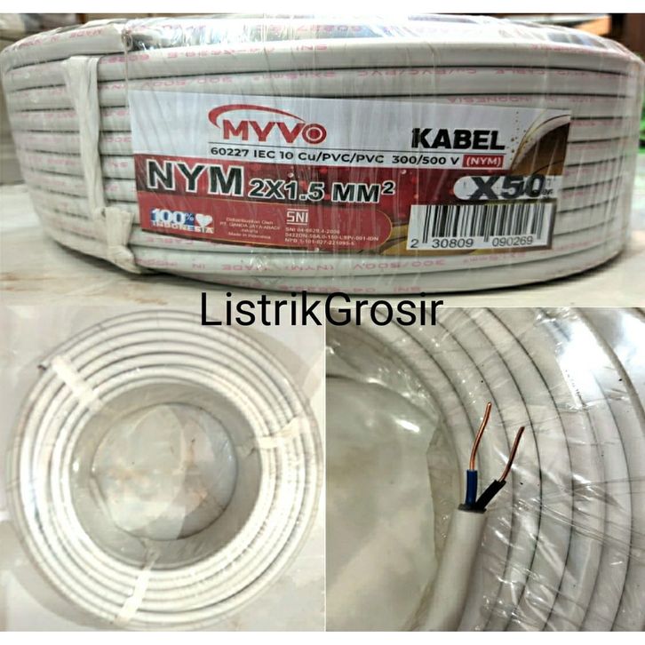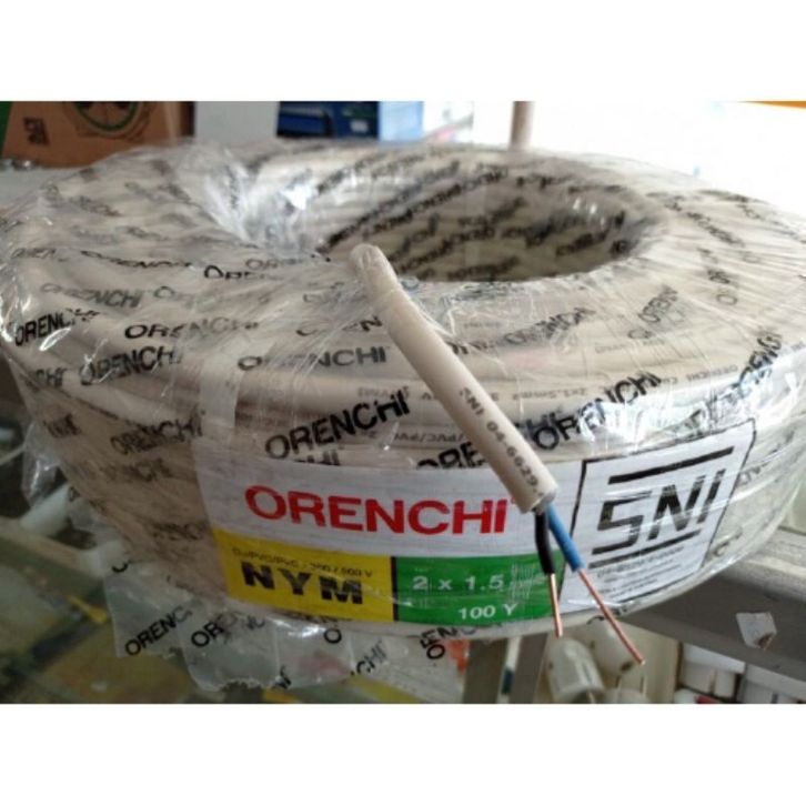 Kabel Listrik Kawat Engkel Tembaga Orenchi Nym 2x1.5 2x1,5 3x1,5 3X1.5 50Y Standard SNI PLN