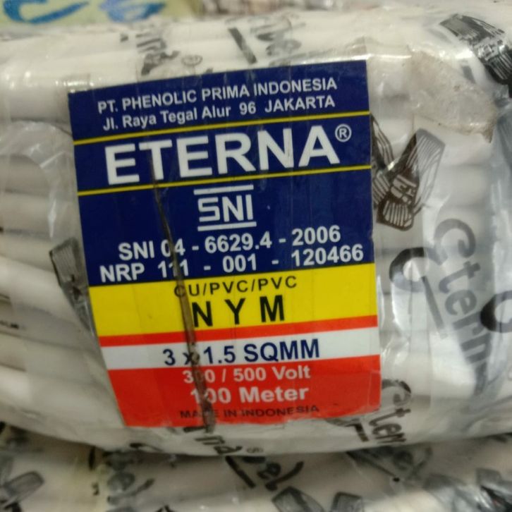 [100 meter] Kabel Eterna NYM 3x1,5 @100m 3x1.5 putih tunggal kawat