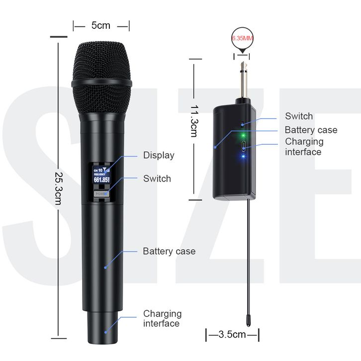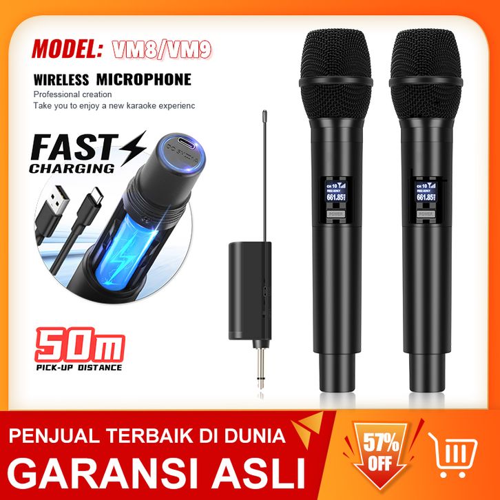Mikrofon Nirkabel BAXS VM8 / VM9 UHF Rechargeable - Tipe-C, Wireless Mic Profesional Indoor Outdoor Karaoke Panggung