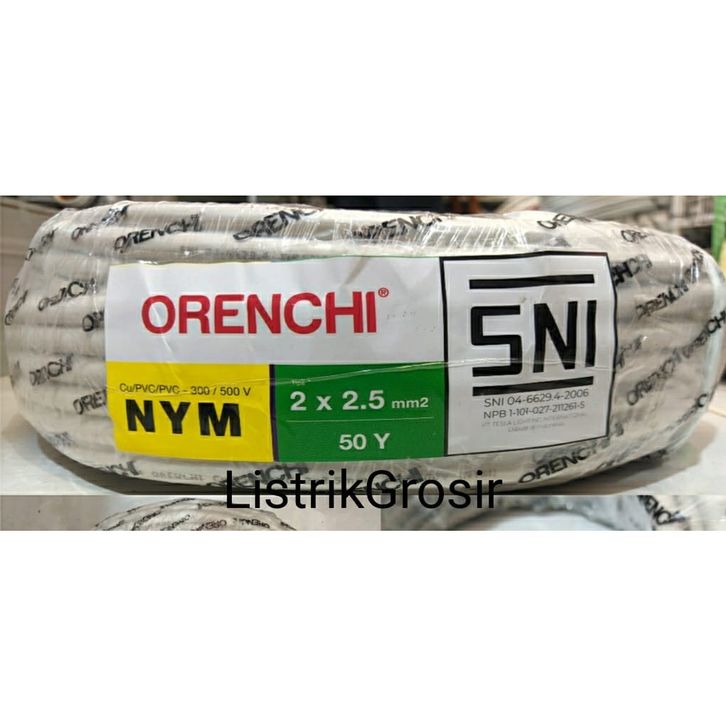 Kabel Listrik Kawat Engkel Full Tembaga Orenchi Nym 2x2.5 2x2,5 mm 50Y SNI PLN