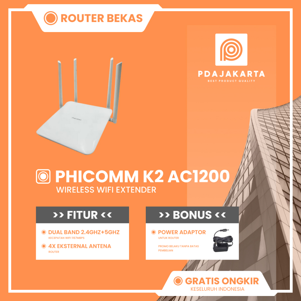 Router PHICOMM K2 AC1200 Dual Band 2.4GHz & 5GHz Wireless Router WiFi Bekas Original