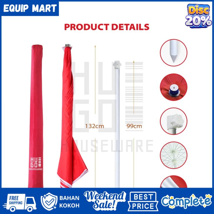 Payung Jualan 240 CM Payung Tenda Taman Pantai Cafe Bazar Lapak dengan Sarung
