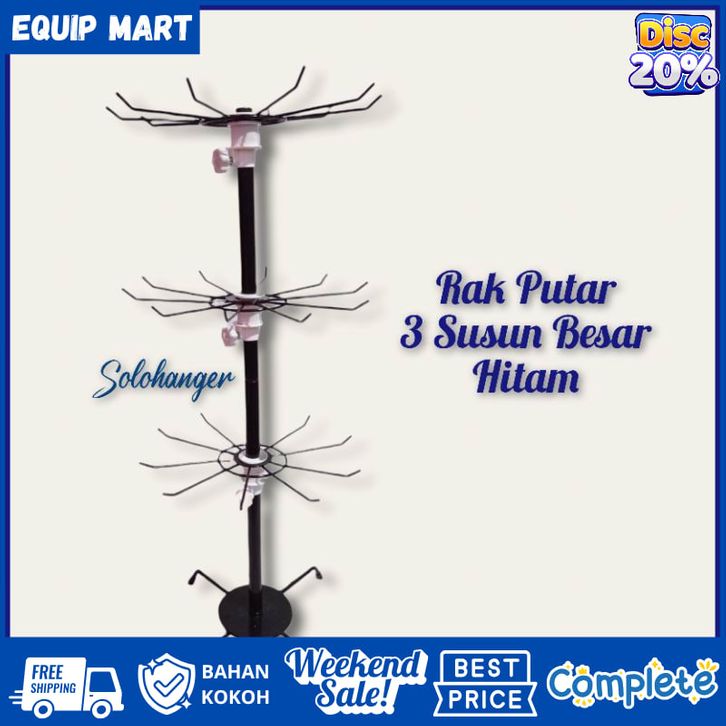 Rak Putar 3 Susun Pipa Tebal Eksklusif Keren Matahari Display Aksesoris Gantungan Hanger