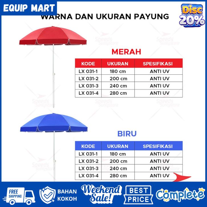 Payung Tenda Payung Pantai Cafe Bazaar Event Parasol Diameter 200cm Ori 031-2