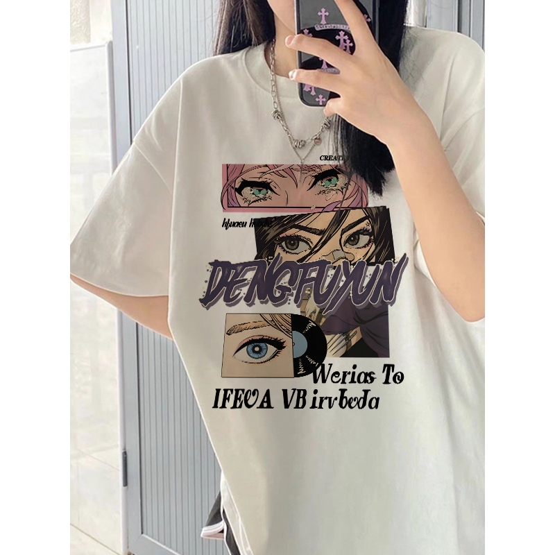 Yesgirl baju atasan wanita terbaru kekinian 100 PERSENcotton t shirt girl head letter print baju kaos oversize wanita atasan korean style wanita |3.4