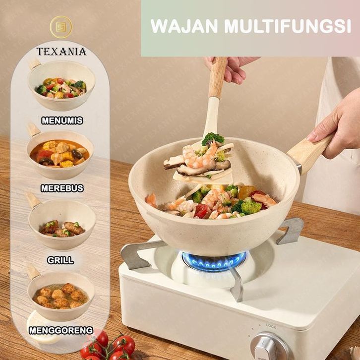 TEXANIA SET Saucepan 20cm + Eggpan 3 Lubang Cream Aluminium Aloy Kitchenware