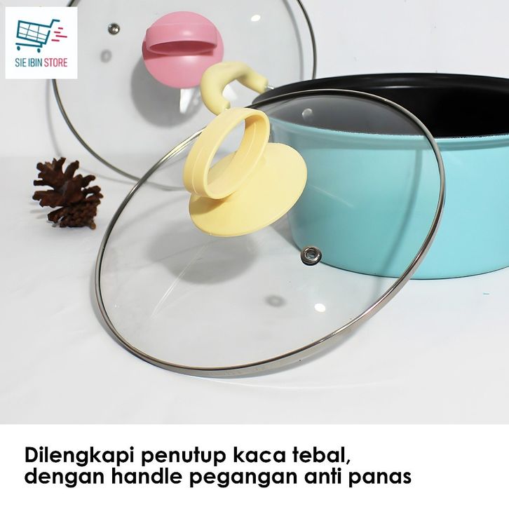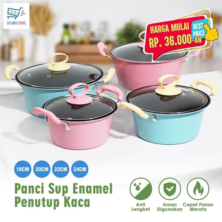 PANCI SUP TUTUP KACA ENAMEL / SOUP POT PANCI SUSU ENAMEL 18CM 20CM 22CM 24CM Free Ongkir