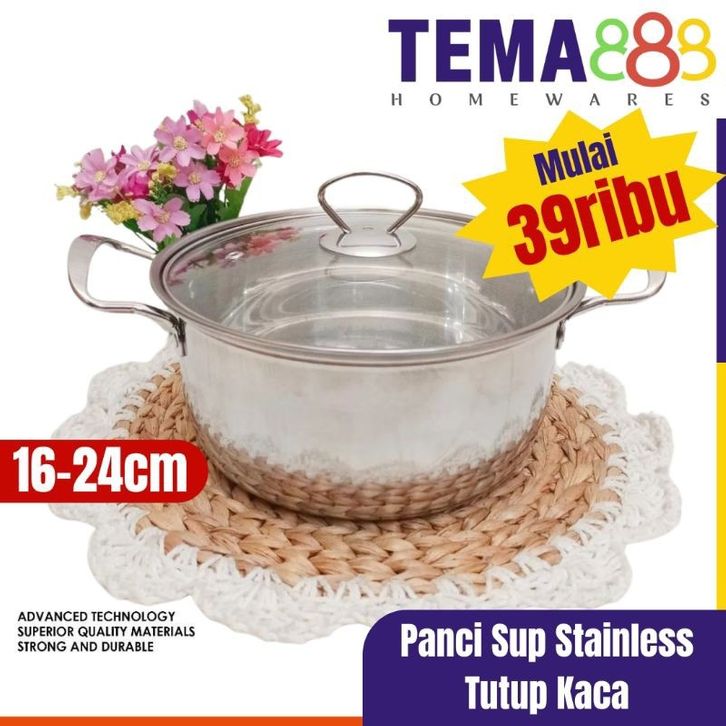 Panci Sup Tutup Kaca Stainless Steel | Soup Pot 24cm 22cm 20cm 18cm 16cm Gagang Stainless