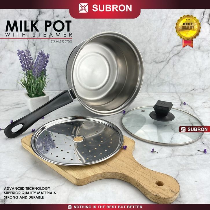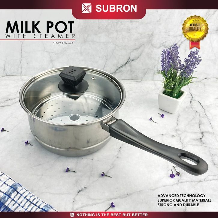 SUBRON Panci Kukus 20cm Steamer Panci Dandang Stainless Susu Milk Pot Saringan MULTIFUNGSI