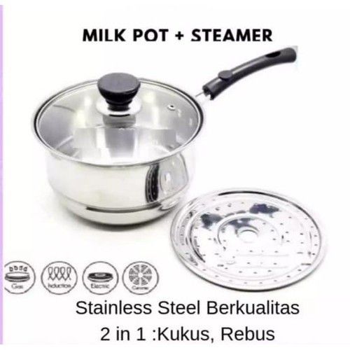 Best Seller MILK POT 20 CM , PANCI TUTUP KACA + STEAMER