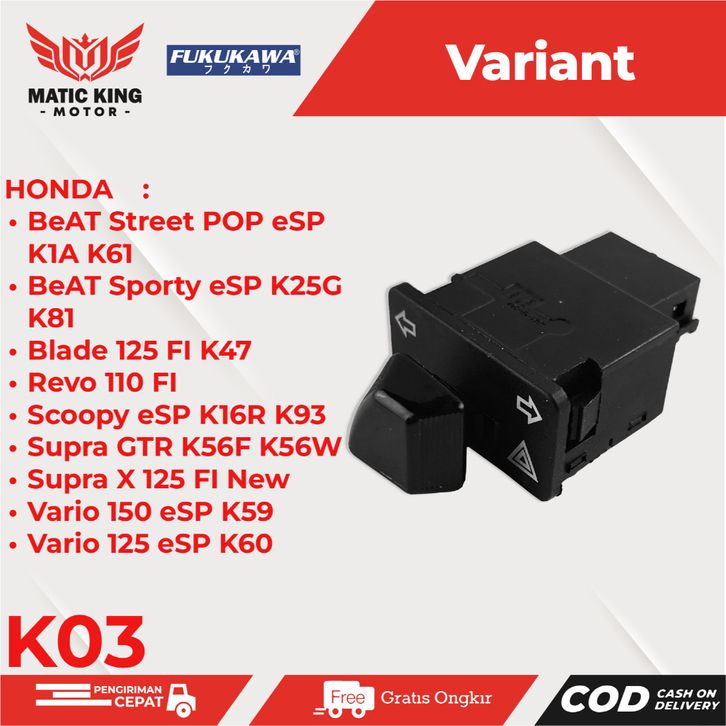 Fukukawa Saklar Tombol Sein Sen Hazard Beat Vario Scoopy Supra X GTR Revo Blade Fi eSP POP Street