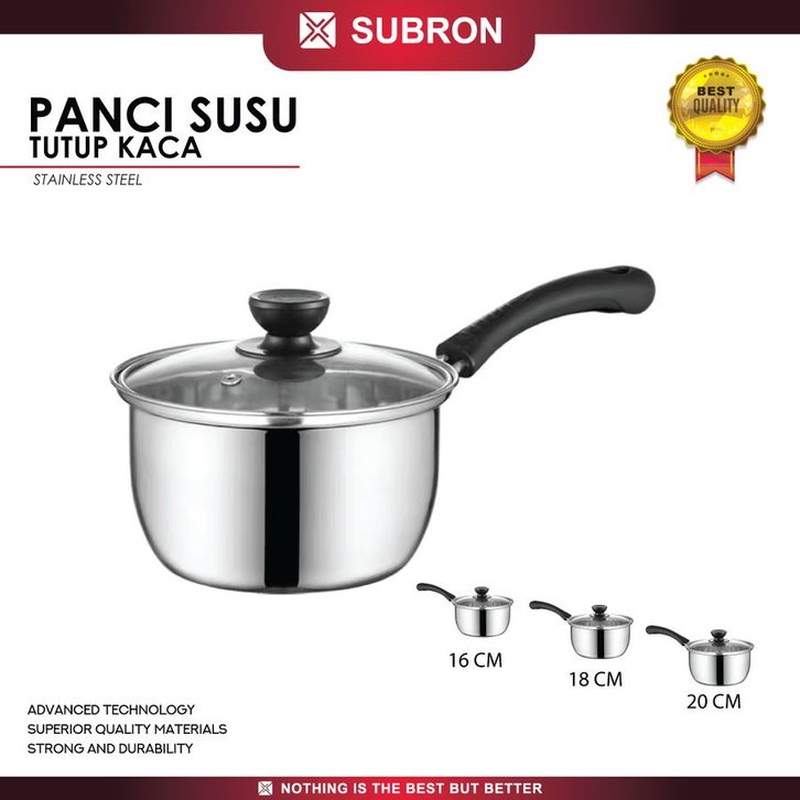 Panci susu milk pot 16cm 18cm 20cm tutup kaca stainless steel - SUBRON