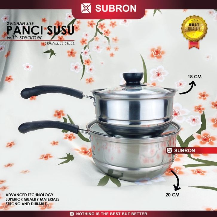 Panci Susu Milk Pot Steamer Kukus 18cm 20cm Stainless Kukusan - SUBRON