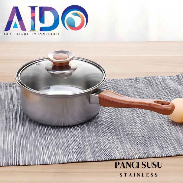 Panci Susu Stainless panci rebus 16cm dg tutup kaca gagang panjang Panci Kaldu Stainless
