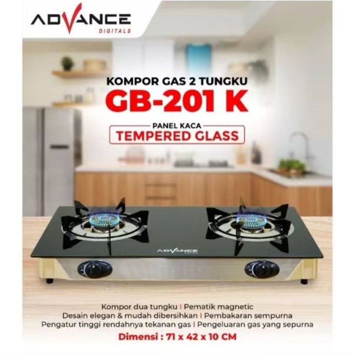 ADVANCE KOMPOR GAS 2 TUNGKU PANEL KACA ANTI PECAH GB-201K/GB-200K
