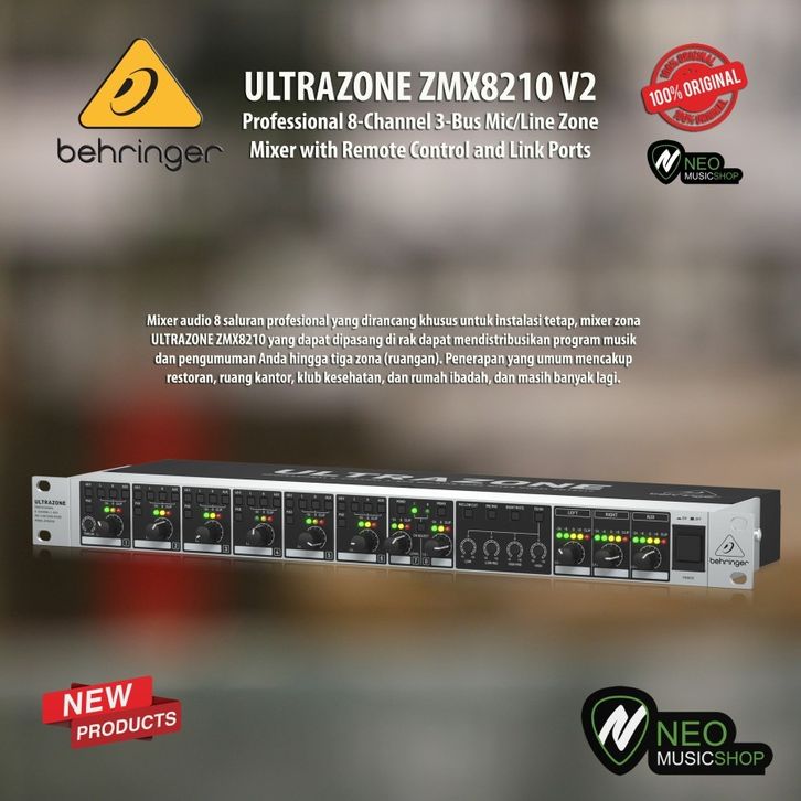 Behringer ULTRAZON ZMX8210 V2 Professional 8-Channel 3-Bus Mic/Line Zone Mixer with Remote Control and Link Ports