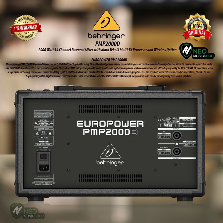 Behringer PMP2000D 2000 Watt 14 Channel Powered Mixer FX Processor
