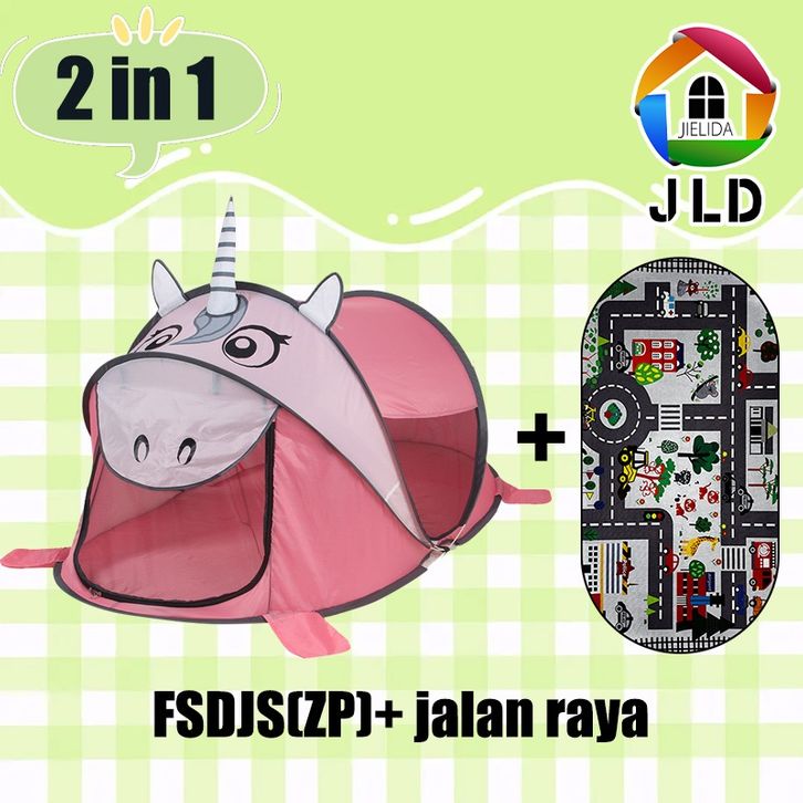 JieLiDa Tenda Anak Karakter Tenda Camg Anak Lipat 1pcs1x1x6cm+ Alas Tikar Bermain Anak 1pcs176x9cm