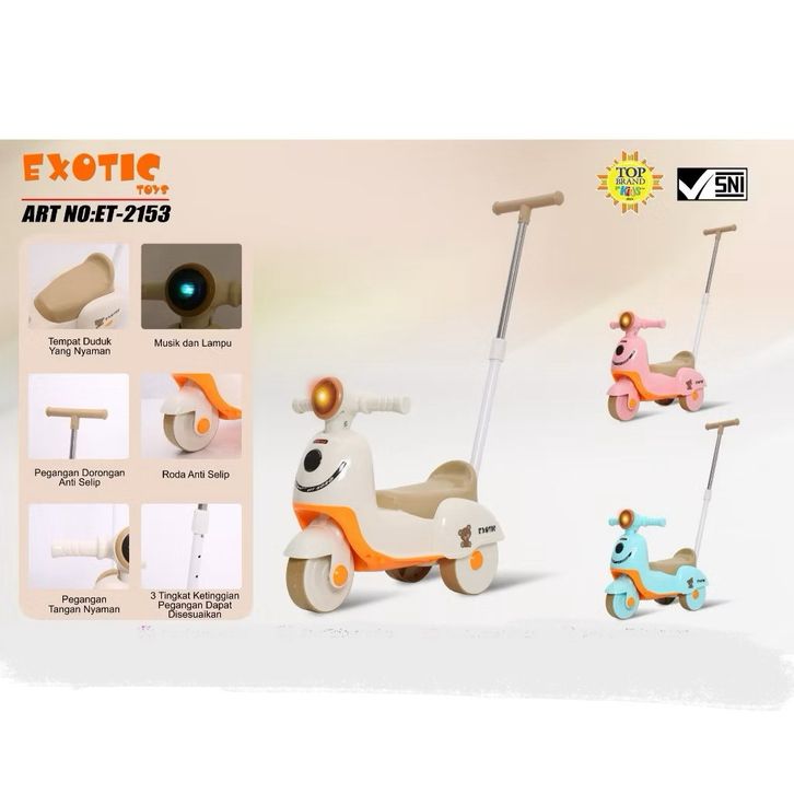 Mainan sepeda Motor Dorong Anak ET 22 35 Vespa musik dan lampu balance bike keseimbangan