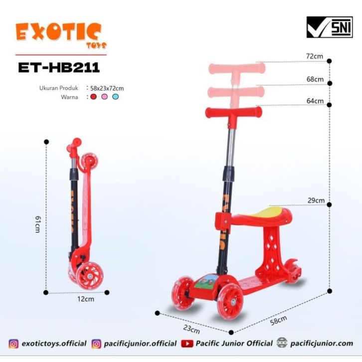 Skuter Anak Exotic ET HB1,ET - HB9 Multifungsi Bisa di lipat