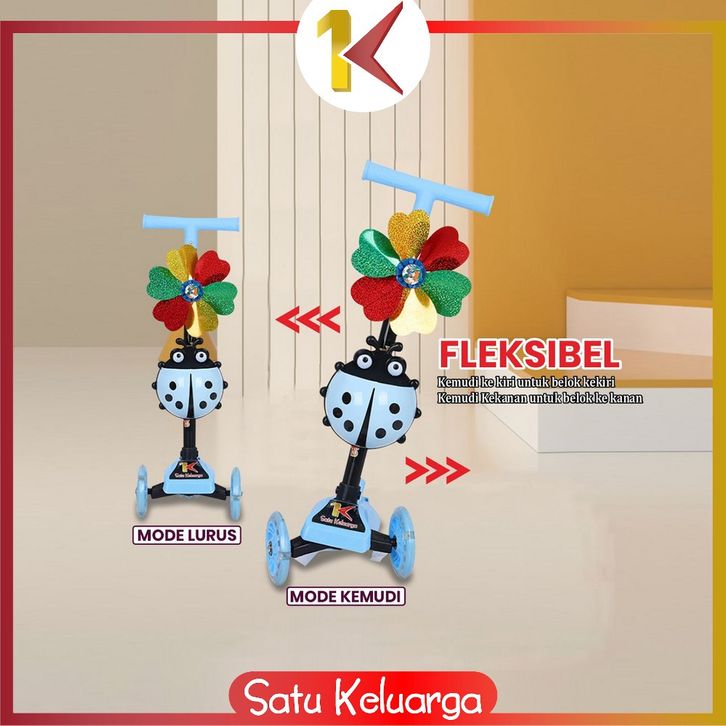SK-M95 Mainan Otopet Scooter Anak O Kumbang Skuter Anak Roda 3 Bisa Lipat Lampu LED Roda Murah