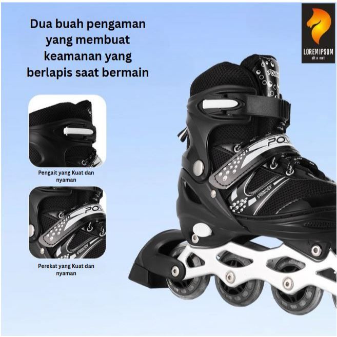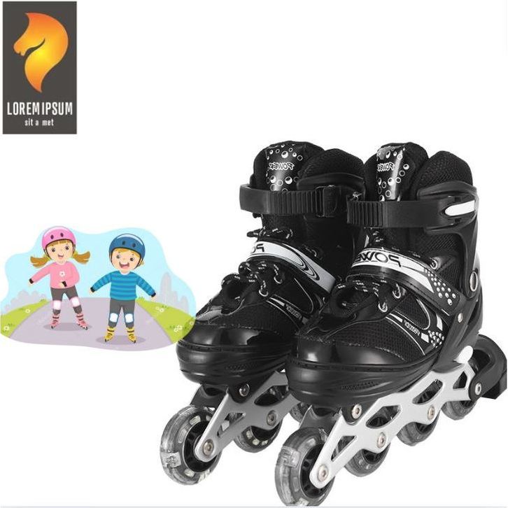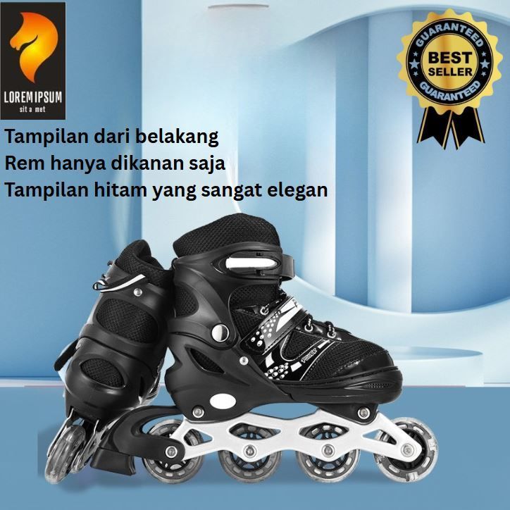 Skate InSepatu Roda Hitam Anti Selip PU Skate InRoda Depan Menyala LED