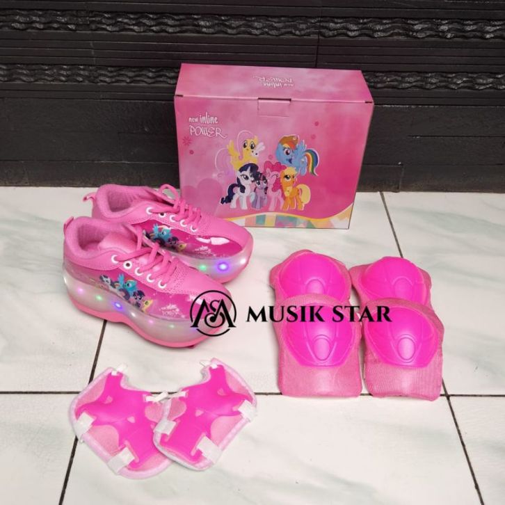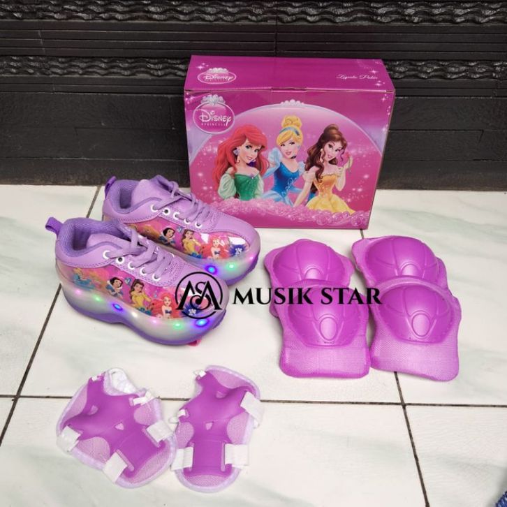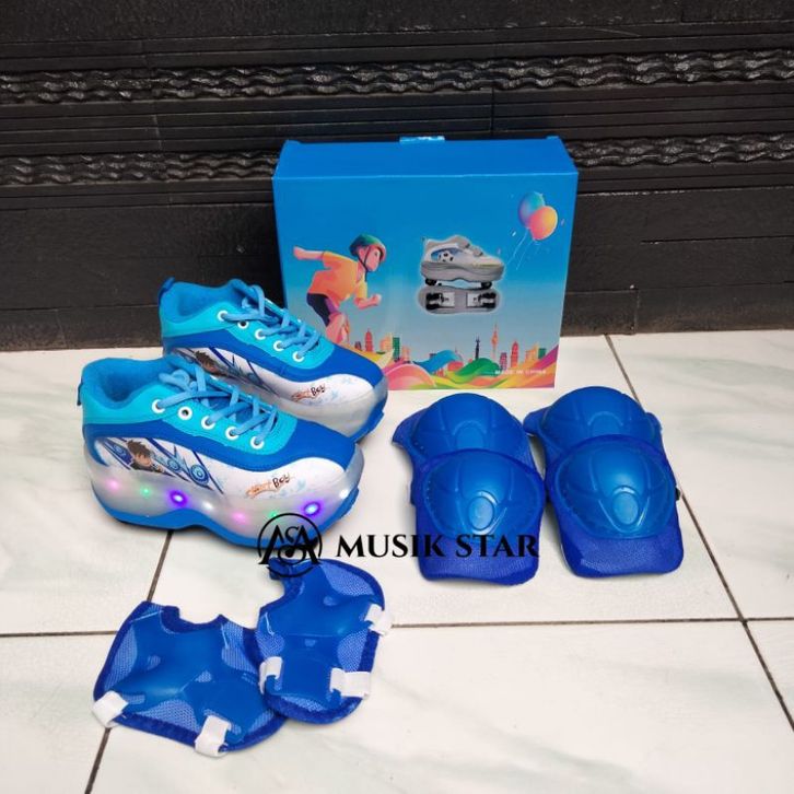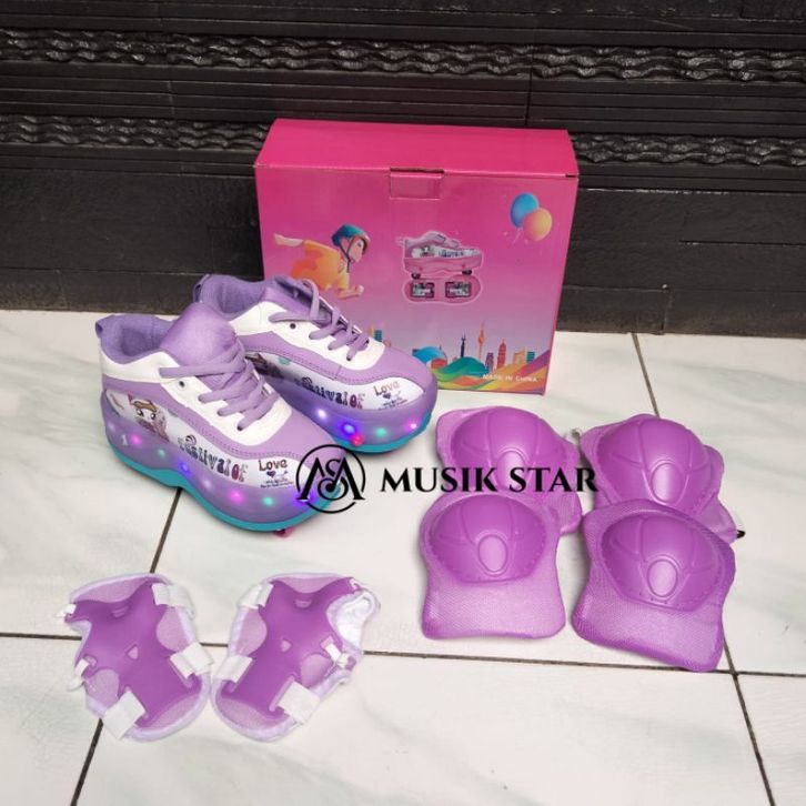 Sepatu Roda karakter LED 2in1 set pelindung lutut siku dan tangan